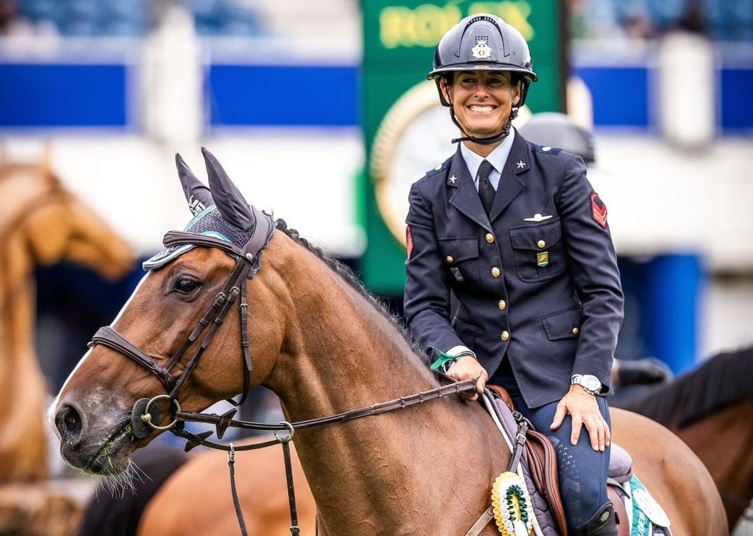 71 i partenti al via, di cui 34 i doppi netti sul percorso disegnato all’interno della grande arena in sabbia Grand Prix. Protagonista assoluta per la nostra nazione il Primo Graduato dell’Aeronautica Militare Giulia Martinengo Marquet in sella al castrone Holsteiner di 12 anni Scuderia 1918 Calle Deluxe (Cesano 2 x Con Air 7) ha siglato un brillante doppio netto nel tempo di 26’’.20. Continua la serie di successi per questo binomio, dopo la conquista del titolo di Campione Italiano Assoluto 2024 (+ informazioni: clicca qui) ed il terzo posto nella 150 LR del CSIO5* di Dublino. (+ informazioni: clicca qui)