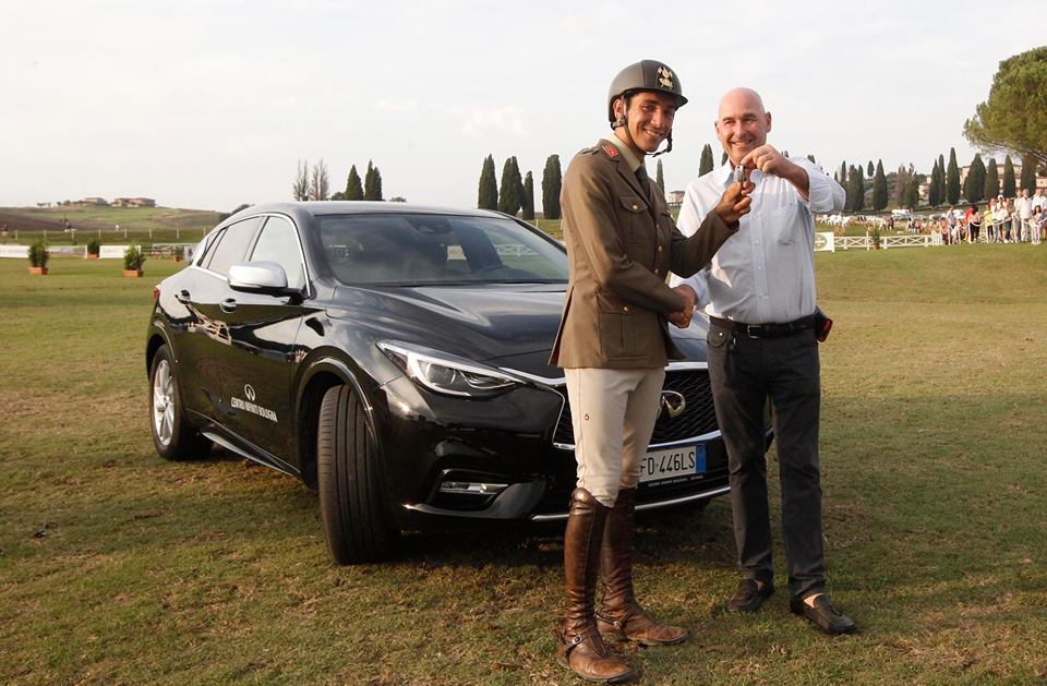Al Caporal Maggiore Guido Franchi il bonus della gara, l’automobile Infiniti Q30, grazie ai punti accumulati come miglior binomio nelle gare Ranking (la vittoria di venerdì – clicca qui – e il piazzamento nel GP odierno, sempre in sella a Quixotic DC, all’8° posto – 0/8;43″:60).