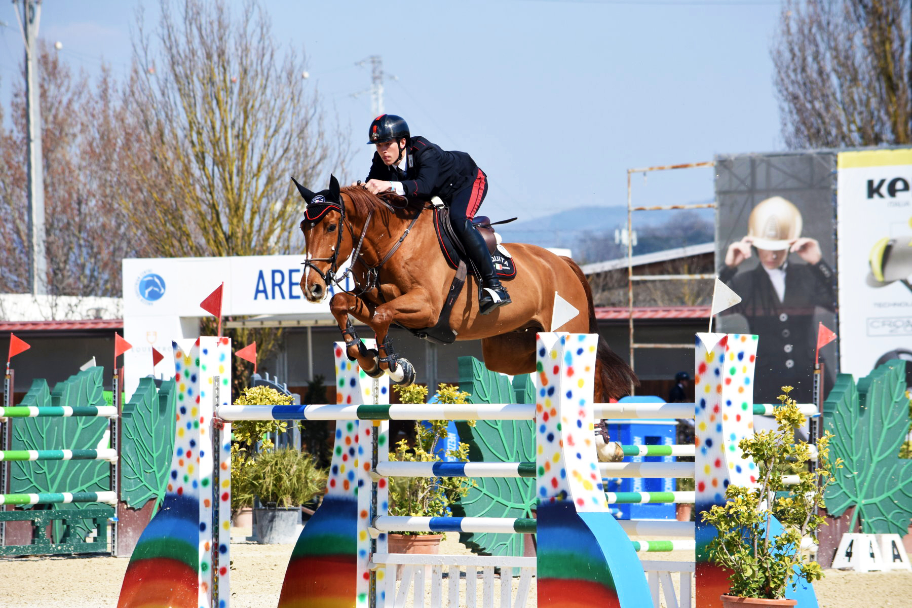 Giacomo Casadei in splendida forma! Il giovane Carabiniere ha infatti vinto in sella a Charlie (2012, Oldenburg, Chacco – Blue x Chintan) con 0 penalità in 42”.08, e si è portato in terza posizione con Evitason van’t Paradijs (2010, SBS, Golden Hawk x Quick Lauro Z) senza errori al percorso base e 4 penalità in barrage nel tempo di 38”.65. Francesco Rossetto ha ottenuto la Piazza d’Onore accompagnato da Cazall d’Argouges (2012, Selle Français, Calvaro x Quaprice Bois Margot) con 2/0 in 46”.50.