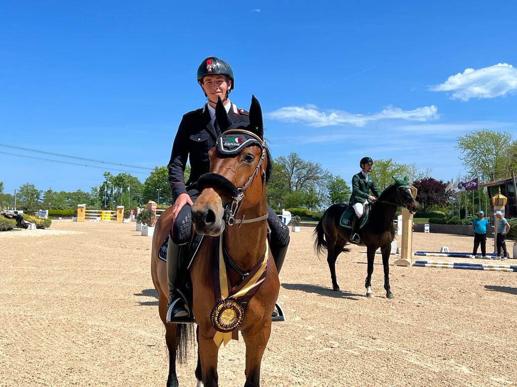Qualificato alla seconda Manche con ben tre cavalli il Carabiniere Giacomo Casadei ha guadagnato la vittoria in sella a Ballantine di Villagana (2009, stallone, Sella Italiano, Quidam de Revel x Athlet Z) mettendo a segno il primo dei sei doppi netti nel tempo più veloce di 39”.08. La Piazza d’Onore è rimasta in famiglia, l’ha conquistata infatti il padre di Giacomo, Mirko Casadei che accompagnato da Ultimate de Laubry Z (2015, stallone, Zangersheide, Ugano Sitte x Cardento) ha chiuso il tracciato nel tempo di 39”.3. A chiudere il podio ci hanno pensato Clio Boni e Konstop (2010, castrone, BWP, Fierro Hof Ter Zeedycke x Toulon), anche per loro una performance impeccabile nel tempo a tabellone di 39”.5.