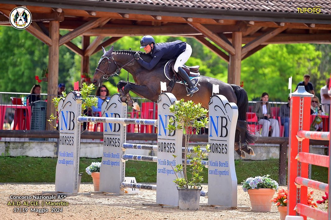 © F. Poggi – riproduzione riservata; foto: Matteo Leonardi e Daytona della Caccia vincitori del Gran Premio 5* di Manerbio (BS) © Instagram Al.Cle Manerbio