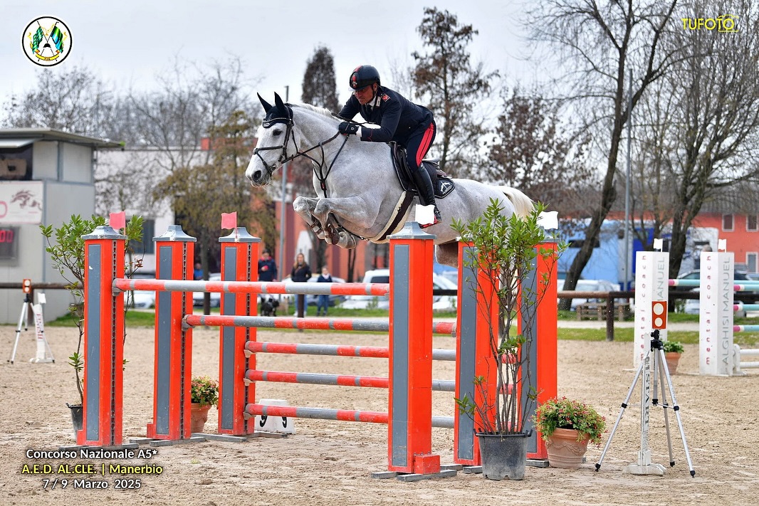 Con la conquista del primo e terzo gradino del podio, l’Appuntato Scelto dei Carabinieri Bruno Chimirri è stato il vero protagonista del Gran Premio di Manerbio presentato da Porrini; in sella a Samara (2014, Sella Italiano, Cardento x Canturo) ha siglato la vittoria con un doppio netto nel tempo di 34”.5, mentre con Je Suis Godot d’Acheronte (2015, Sella Italiano, Toulon x Corland) si è piazzato al terzo posto sempre senza errori ma con un tempo di 39”.96. La seconda posizione è andata al Caporale dell’Esercito Italiano Lorenzo Correddu che in sella a Dalakani Chardonnet (2013, Selle Français, Padock du Plessis x Baloubet du Rouet) ha chiuso senza penalità nel tempo di 36”.96.
