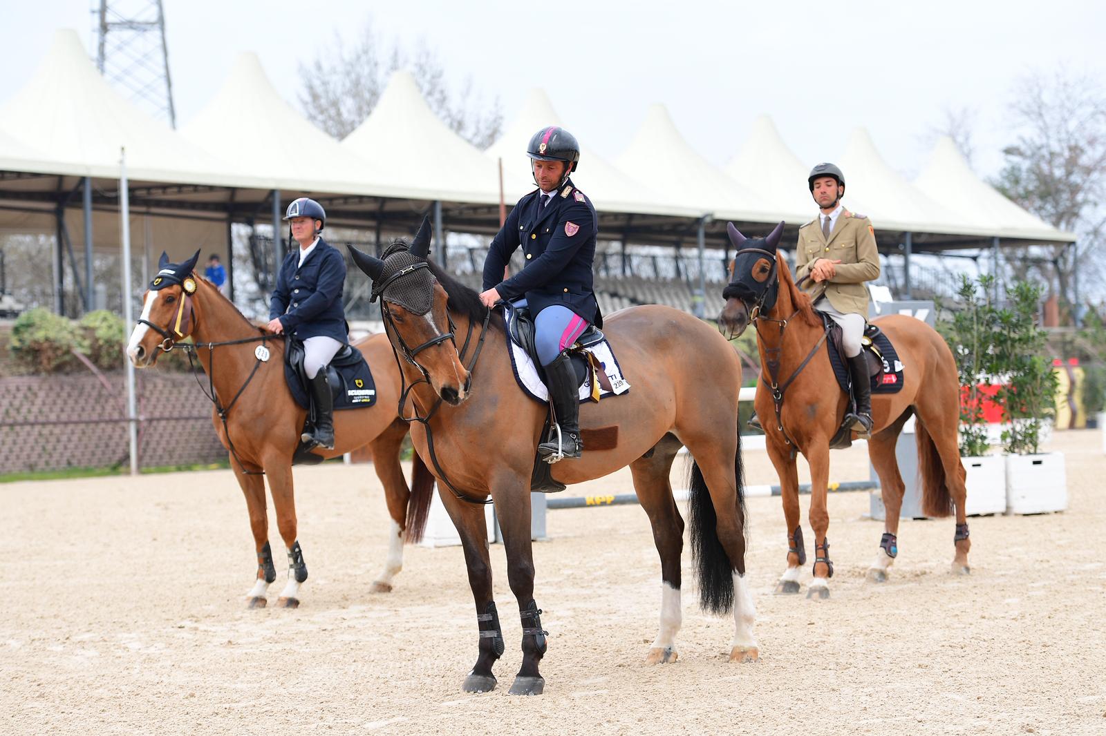 A imporsi è stato Federico Ciriesi, atleta del Gruppo Sportivo Fiamme Oro della Polizia di Stato, in sella a Quantasy della Caccia (Sella Italiano 2011, Quaprice × Numero Uno). In Piazza d’Onore il veterano Arnaldo Bologni che ha condotto con precisione Diego del Caribe (Selle Français 2013, Kannan x Quidam de Revel), chiudendo con netti in ambo le manche in 48”.27. Il terzo posto è andato a Guido Franchi, Graduato dell’Esercito Italiano, a sua volta autore di una bella gara in sella alla KWPN Latina (2016, Comme il Faut 5 × Canabis Z). Un errore nella manche decisiva ha però pesato sul punteggio finale del binomio, che ha chiuso col tempo di 44”.47.