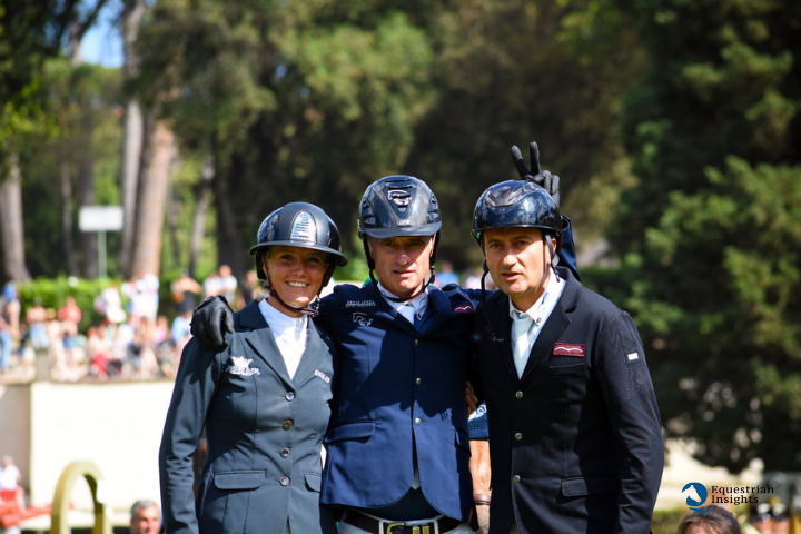 © B. Scapolo; riproduzione riservata; foto: i protagonisti del Gran Premio Roma; da destra: Piergiorgio Bucci (ITA), Denis Lynch (IRL), Jana Wargers (GER) © A.Benna / EqIn