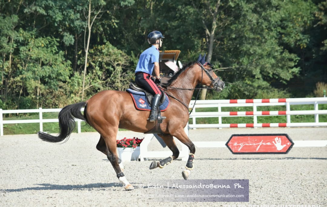 Compatibilmente al calendario agonistico degli altri miei cavalli, impegnati negli internazionali, riusciamo a portare Quilazio al Naz.B6* di Gorla Minore a metà giugno – questo concorso era per me l’appuntamento di visione per i Giochi del Mediterraneo -, dove questo fantastico 8 anni si conferma nuovamente, mettendo a segno ancora percorsi senza errori e ottenendo anche un ottimo 5° posto nel Gran Premio. A quel punto, puntiamo a provare a farlo partecipare a degli Internazionali: andiamo quindi 2 settimane ai CSI di Cattolica: anche qui Quilazio conclude sempre percorsi senza errori in entrambi i Gran Premi del Concorso! E, infine, domenica scorsa, come hai detto tu in apertura, un buonissimo piazzamento, anzi, un importantissimo piazzamento in un impegnativo GP a 2* per un 8 anni senza particolare esperienza! Insomma, sono davvero piacevolmente stupito e felice: è proprio bello scoprire un tesoro simile e vederlo brillare di una luce che, di concorso in concorso, sta illuminando anche me: se tutto questo non fosse stato deciso dal semplice corso degli eventi, oggi io e Quilazio non saremmo certo insieme, è fantastico! Speriamo che il cavallo possa continuare bene così come ha fatto finora! Dita incrociate!” (Filippo Bologni cit.).