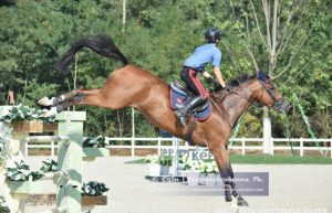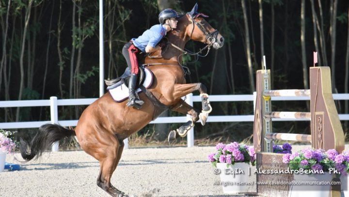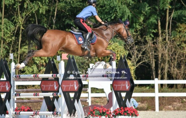Caso vuole che all’inizio di maggio scorso il cavallo sia passato in gestione totale alla mia scuderia ed improvvisamente mi sono quindi ritrovato a montarlo io, devo dire con qualche dubbio, all’inizio. Decidiamo di portarlo ad un Nazionale (a Cervia ad inizio maggio), dove io e Quilazio gareggiamo insieme per la prima volta in una 130 e in una 140: subito sono arrivati i nostri primi due percorsi netti! Comincio quindi a ricredermi un po’, ho trovato immediatamente una bella sintonia con lui, mi è piaciuto il suo modo di affrontare la gara. C’è ancora da lavorare, ma decidiamo di andare avanti“.