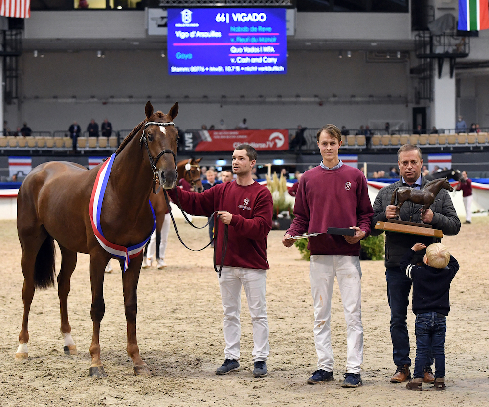 Ad essere incoronato campione del 2020 durante la Körung of Holstein (approvazione Holsteiner), lo scorso 1° novembre, è stato un figlio nato ad aprile 2018 da Vigo d’Arsouilles, ambasciatore BWP (sic!) e campione del mondo nel 2010 con Philippe Le Jeune; nipote di Nabab de Rêve (a sua volta BWP), proviene da linea paterna dal francese Quidam de Revel. Quest’ultimo è tuttavia anche padre del welstfaliano Quo Vados I, padre della madre (Goya, Holst. del 2014) di questo giovane campione Holsteiner 2020, che ha quindi due volte nella sua genetica l’ottimo Quidam de Revel.