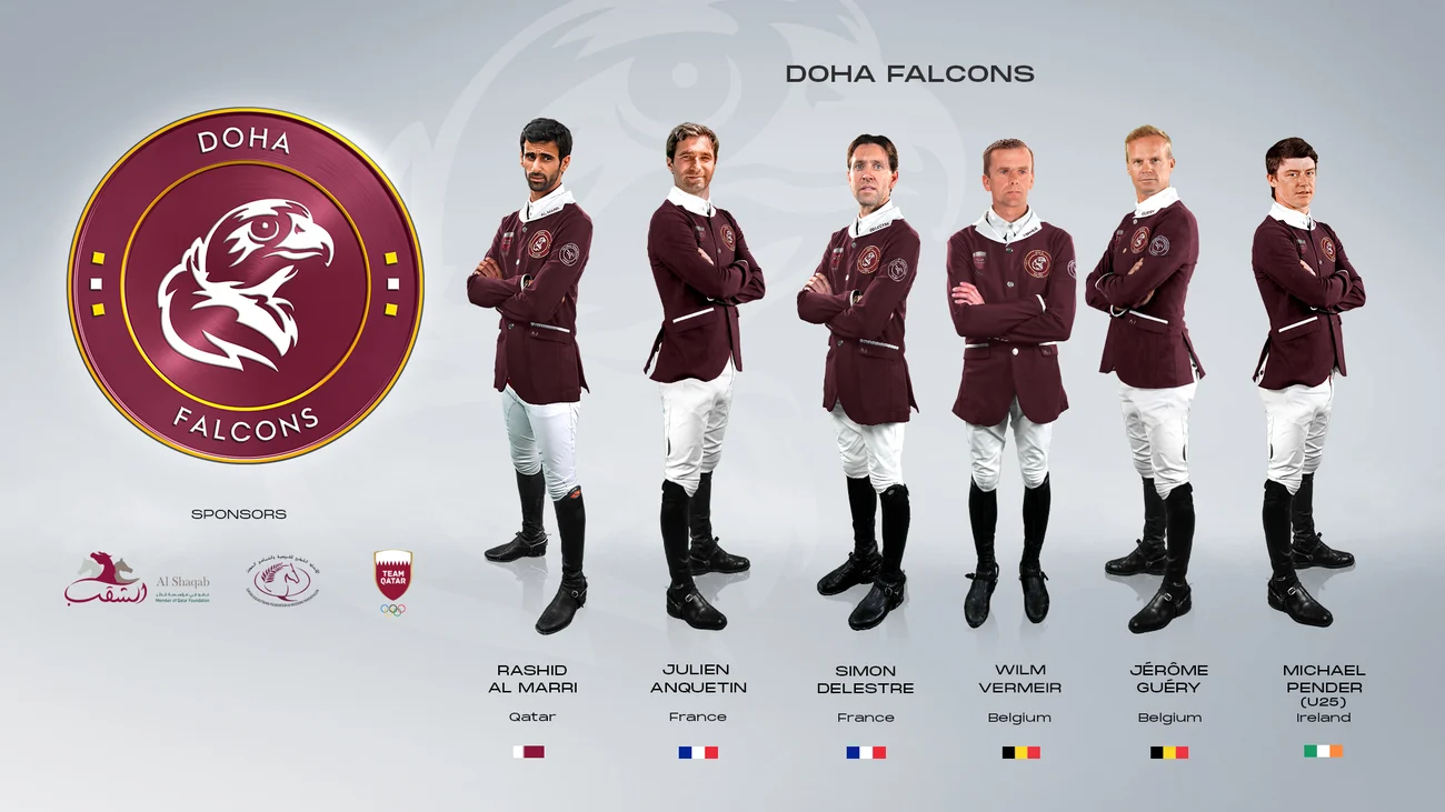 Con il supporto di sponsor prestigiosi come Al Shaqab, Qatar Equestrian Federation e Team Qatar, i Doha Falcons sono pronti a dire la loro nella stagione GCL 2024. I Doha Falcons non hanno lasciato nulla di intentato nel mettere insieme una squadra da sogno, fondendo esperienza e talento per una combinazione imbattibile.