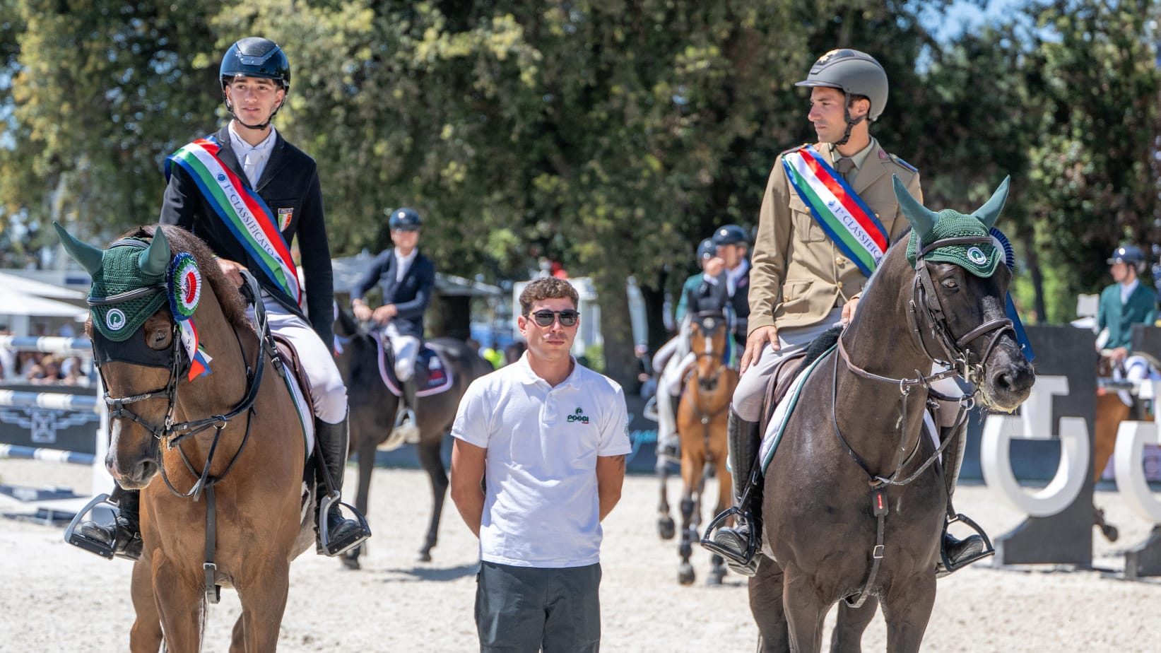 Il podio è stato completato dal Team Torri ESE (team manager Giovanni D’Ambrosio) con Lorenzo Ferrara con Uria della Loggia ed Emma Maria Branduardi con Kastaro van het Eelshof, al secondo posto per la miglior prestazione in ‘gara 2 presented by ESTRA’, e da Eques (team manager Marco Lapi) con Flaminia Sarra su Million Dream del Rilate e Nicolò Scarpato su Acero, squadra questa vincitrice di ‘gara 1’.