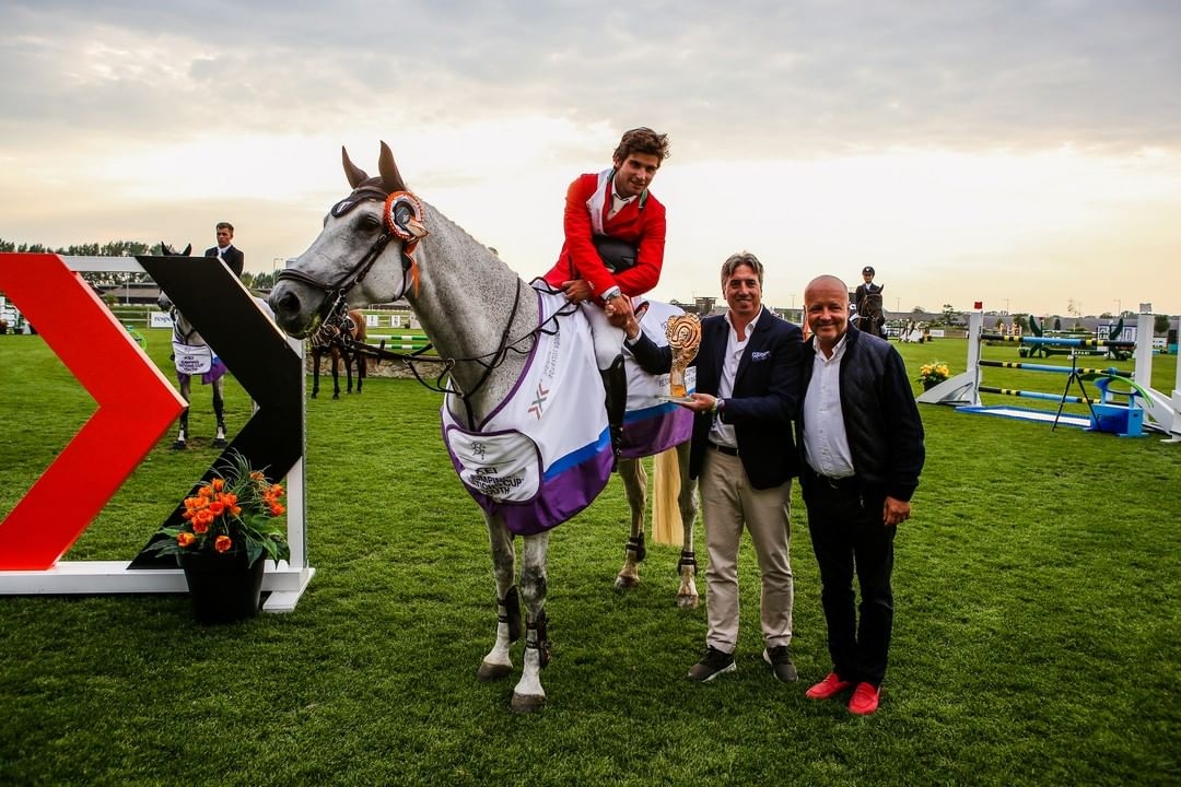 Ma non è finita qui: ulteriore gioia azzurra oggi, nel Grand Prix Young Rider! E’ arrivata infatti un’altra bellissima vittoria, grazie a François Spinelli che sbaraglia la concorrenza nella prova su 1.45m con jump off fermando impeccabilmente il cronometro nel tempo migliore della gara: 38’’:41, insieme alla sua Dakata vd Knuffel, femmina BWP da President x Skippi II. Sara Morucci in sella a Stardust Z (Sandro Z / Sandy Casey) si piazza nella Top Ten, all’8° posto.