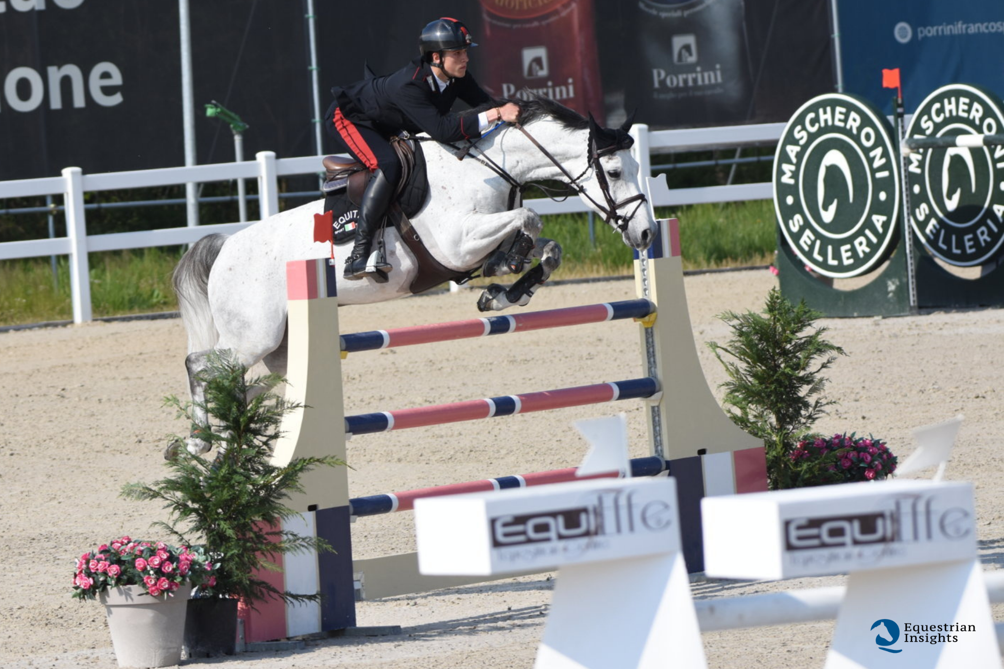 Miglior italiano in campo, invece, il fenomenale carabiniere Giacomo Casadei sul grigio Let’s Go FZ (Hannover del 2013, Lord Faunterloy x Stakkato), che già si era distinto sempre a Gorla Minore giovedì scorso (24 febbraio), vincendo la categoria alta della giornata in sella a Bakardi FZ. Oggi il doppio netto ed i 39”:04 del barrage gli sono valsi la terza posizione della classifica finale del Grand Prix.
