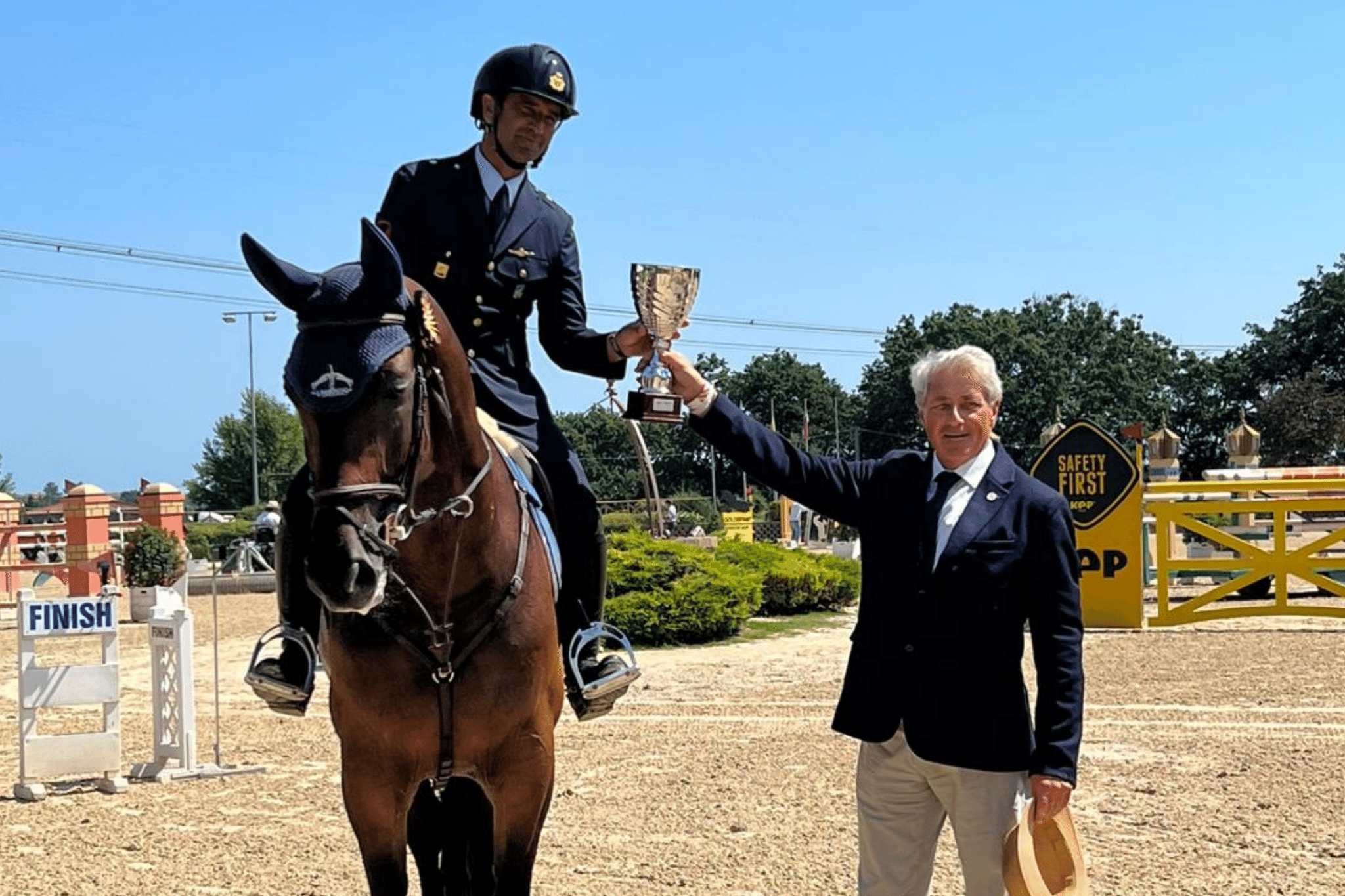 Come anticipato, è salito sul terzo gradino del podio sale il Primo Aviere Capo dell’Aeronautica Militare Emilio Bicocchi accompagnato da Delirio delle Sementarecce (SI del 2014, Kapitol d’Argonne x Concorde). Questo binomio tutto italiano si è imposto sul tecnico percorso con un tempo di 40”:10 senza errori.