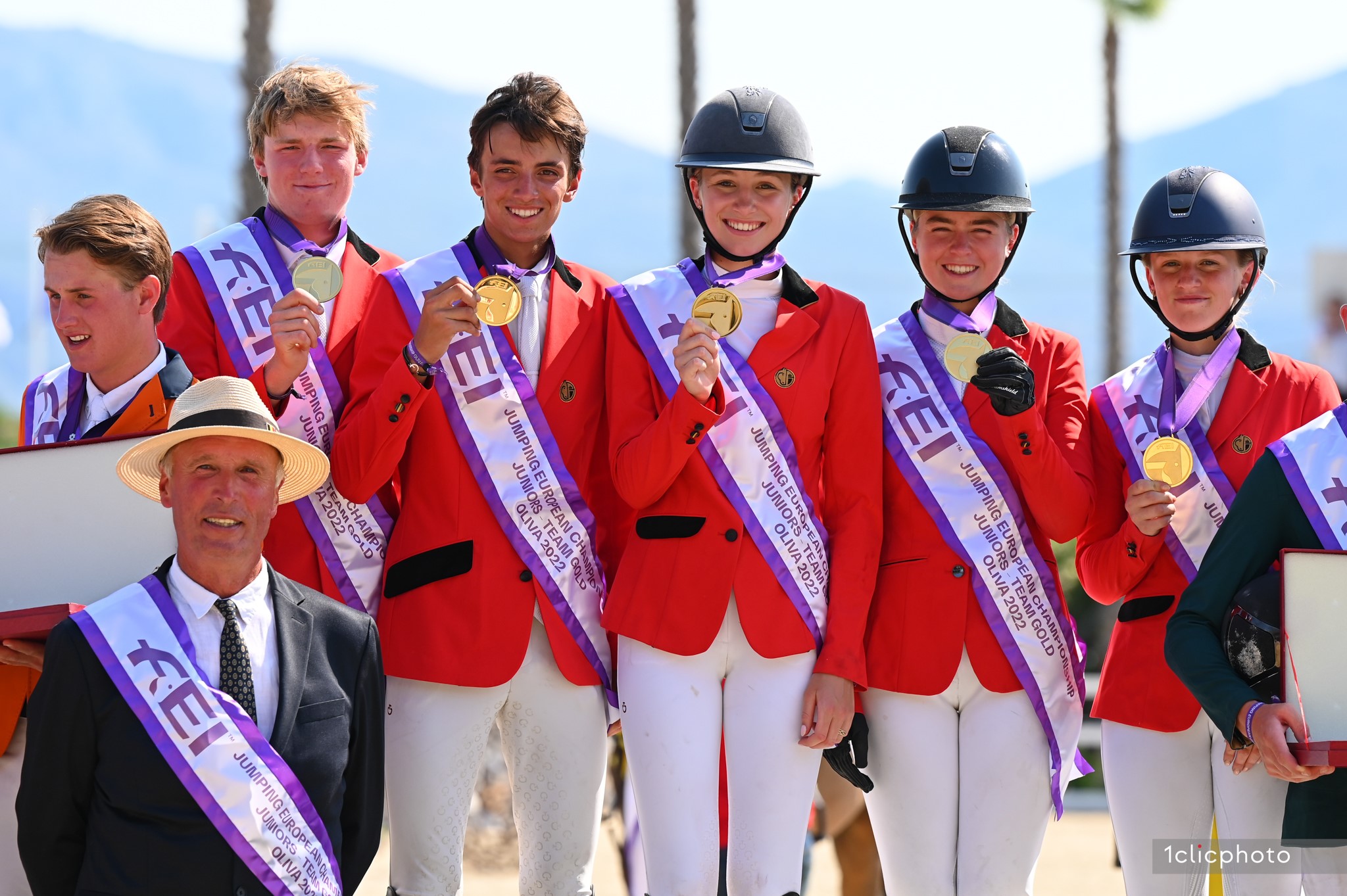 Gli Juniores (under 18) del Belgio hanno vinto la medaglia d’oro al FEI Jumping European Championship for Young Riders, Juniors and Children 2022 a Oliva Nova.