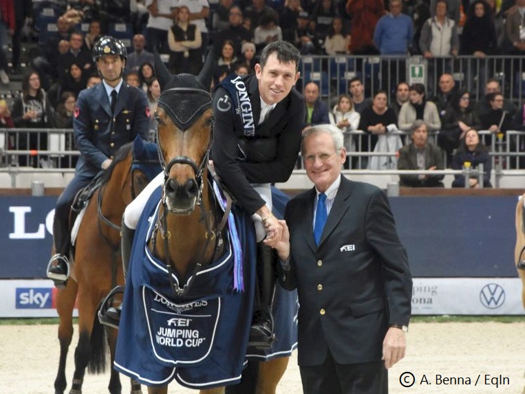 © a cura di redaz.; riproduzione riservata; fonte principale: Comunicato stampa FEI / Grania Willis; in copertina John Roche si congratula con Scott Brash vincitore del Grand Prix di Coppa del Mondo – Jumping Verona 2019 © A. Benna / EqIn