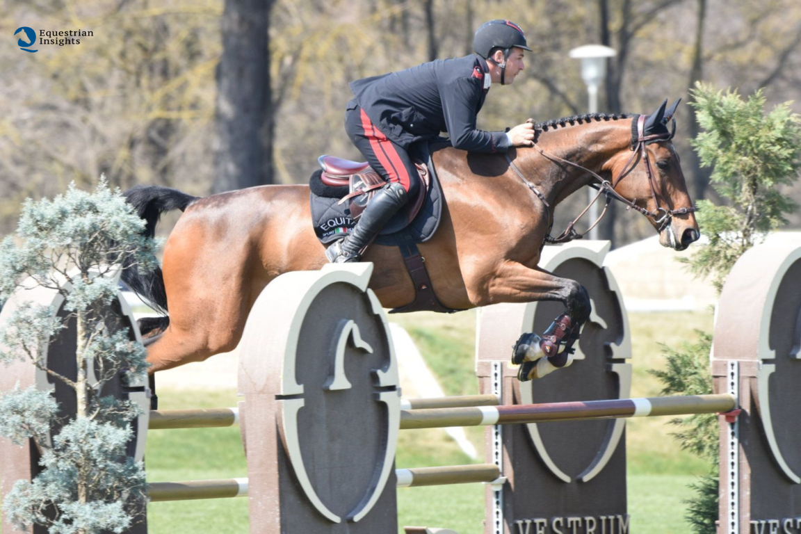 Gaudiano in sella al giovane stallone Vasco 118 è entrato come 45esimo dell’ordine di partenza ed ha portato a casa un percorso netto in 57”.95, grazie al quale si è portato in quarta posizione della classifica. Il bel baio scuro appartenente allo studbook tedesco Mecklenburg è un figlio di Vivant con mamma da Chacco – Blue, ed ha fatto il suo esordio nelle  competizioni internazionali all’età di 6 anni proprio tra le redini di Emanuele Gaudiano con cui è cresciuto agonisticamente. Sono già parecchi i piazzamenti ai vertici delle classifiche mondiali all’attivo di Vasco 118 e Emanuele Gaudiano, per citare alcune vittorie che ha ottenuto lo scorso anno: 145 Accumulator del CSI5*-W di Verona, 145 del CSI2* di Valkenswaard (NED), 145 del CSI4* di Montefalco, 145 del CSI4* di Arezzo e qualche settimana prima della 145 del CSI3* di Arezzo, la 145 del CSI3* di Sharjah (UAE).