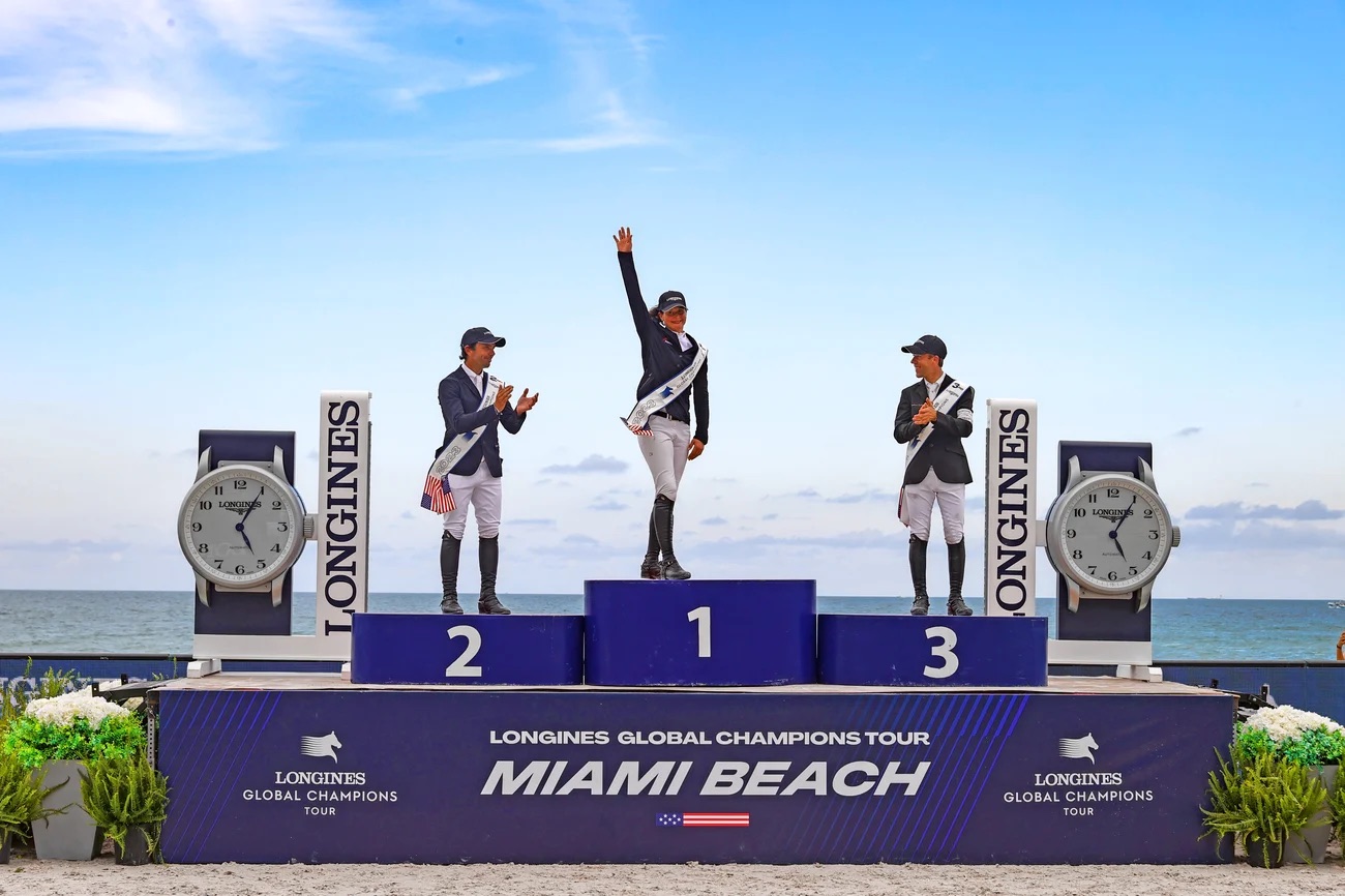 © Comunicato Stampa FEI trad. ita. A cura di L. Ruffino; foto: il podio del Longines Global Champions Tour di Miami Beach © Longines Global Champions Tour