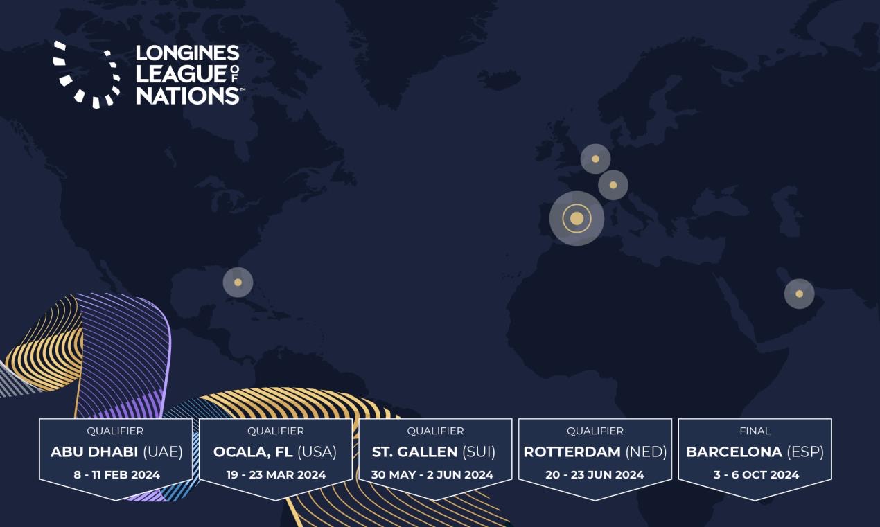Queste dieci squadre sono state invitate a confermare la loro partecipazione alla stagione inaugurale della Longines League of Nations™. I migliori del mondo si sfideranno in quattro qualificazioni: Abu Dhabi (Emirati Arabi Uniti), Ocala (USA), St. Gallen (Svizzera) e Rotterdam (Paesi Bassi), al fine di ottenere uno degli ambiti posti nella finale della Longines League of Nations™ di Barcellona (Spagna), dove le migliori otto nazioni si contenderanno il titolo di Campione della serie.