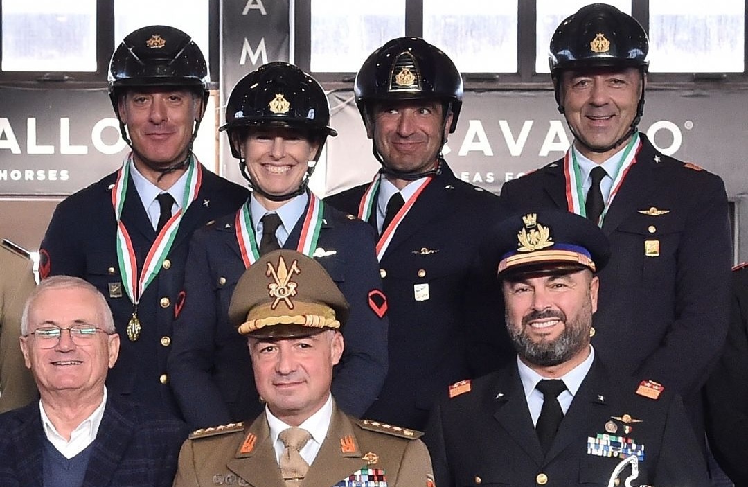 © L. Ruffino – Riproduzione Riservata; foto: la squadra Aeronautica Militare oro al Campionato Interforze a squadre indoor 2025 © via IG_Horses Riviera Resort