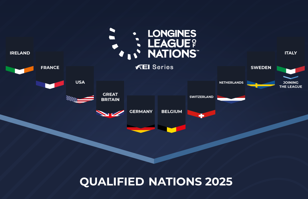 Nove le nazioni che si sono qualificate per l’edizione del 2025: Irlanda, Francia, USA, Gran Bretagna, Belgio, Svizzera, Paesi Bassi, Svezia e i campioni in carica della Germania, che si sono già assicurati il ​​loro posto vincendo la finale della Longines League of Nations™ 2024 a Barcellona (ESP).