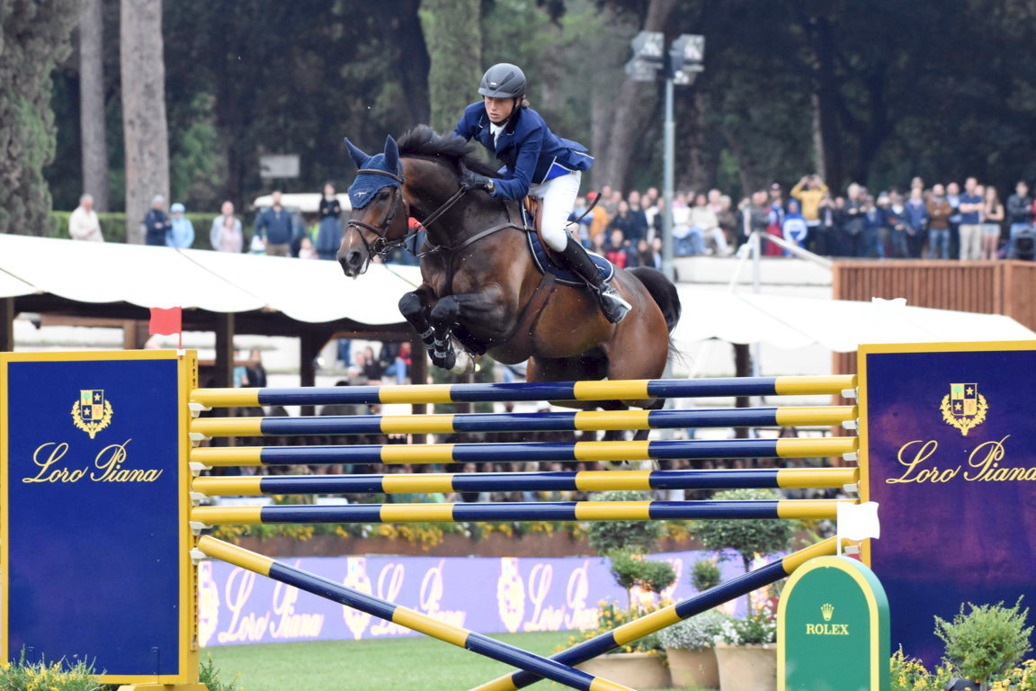 Ed è archiviata a Piazza di Siena anche la categoria “Sei Barriere” Loro Piana (montepremi 20.000 euro), che chiude questa penultima giornata di gare dello CSIO di Roma, edizione 2019. Una decina di cavalieri si è presentata al via nella prova più spettacolare dell’evento, che da ormai qualche anno ha preso il posto della tradizionalissima “Potenza”. Focus dunque sui binomi che abbiamo visto battagliare nel verdeggiante campo in erba di Villa Borghese, con un agguerritissimo Natale Chiaudani che arriva sino all’ultimo barrage con la sua Belly Dancer RS, (femmina grigia del 2010 da Eurocommerce Berlin x Acobat II), purtroppo con un errore proprio sul finale, si posiziona sul secondo gradino del podio. Sempre per l’Italia, Edoardo Tommaso Fochi con Qaro Dan, castrone francese sauro del 2004 da Manhattan x Epsom Dan, arrivato anch’egli al quinto ed ultimo barrage, in cui accumula a sua volta una penalità agli ostacoli. Chaudani e Fochi si sono così divisi il secondo posto della gara.