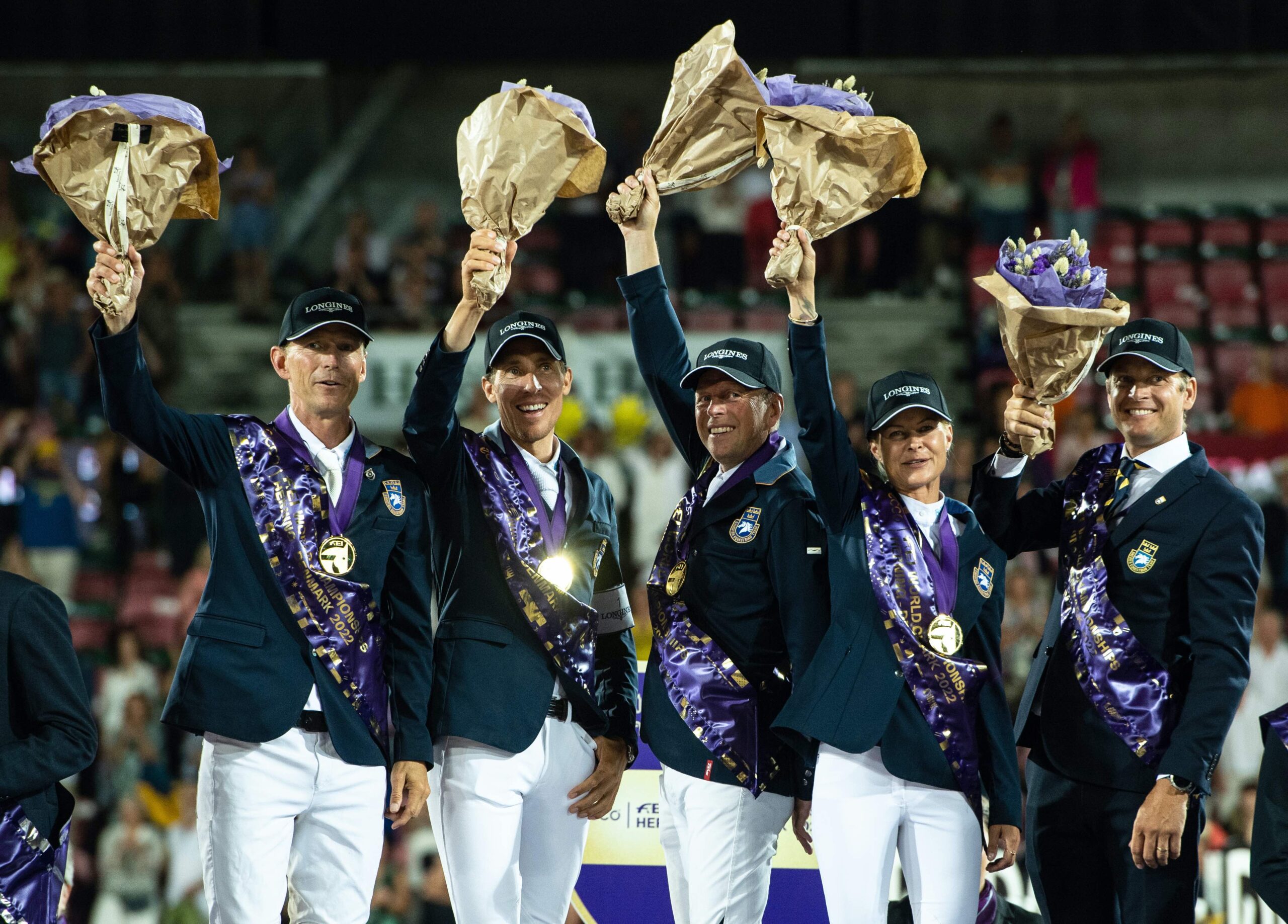 Il momento d’oro del Team svedese è nuovamente arrivato: un anno fa Henrik von Eckermann, Malin Baryard-Johnsson e Peder Fredricson erano saliti sul gradino più alto del podio olimpico di Tokyo e ieri sera, con l’aiuto del fratello di Peder (Jens), sono stati nuovamente i campioni agli Agria FEI Jumping World Championships in Herning, Danimarca.