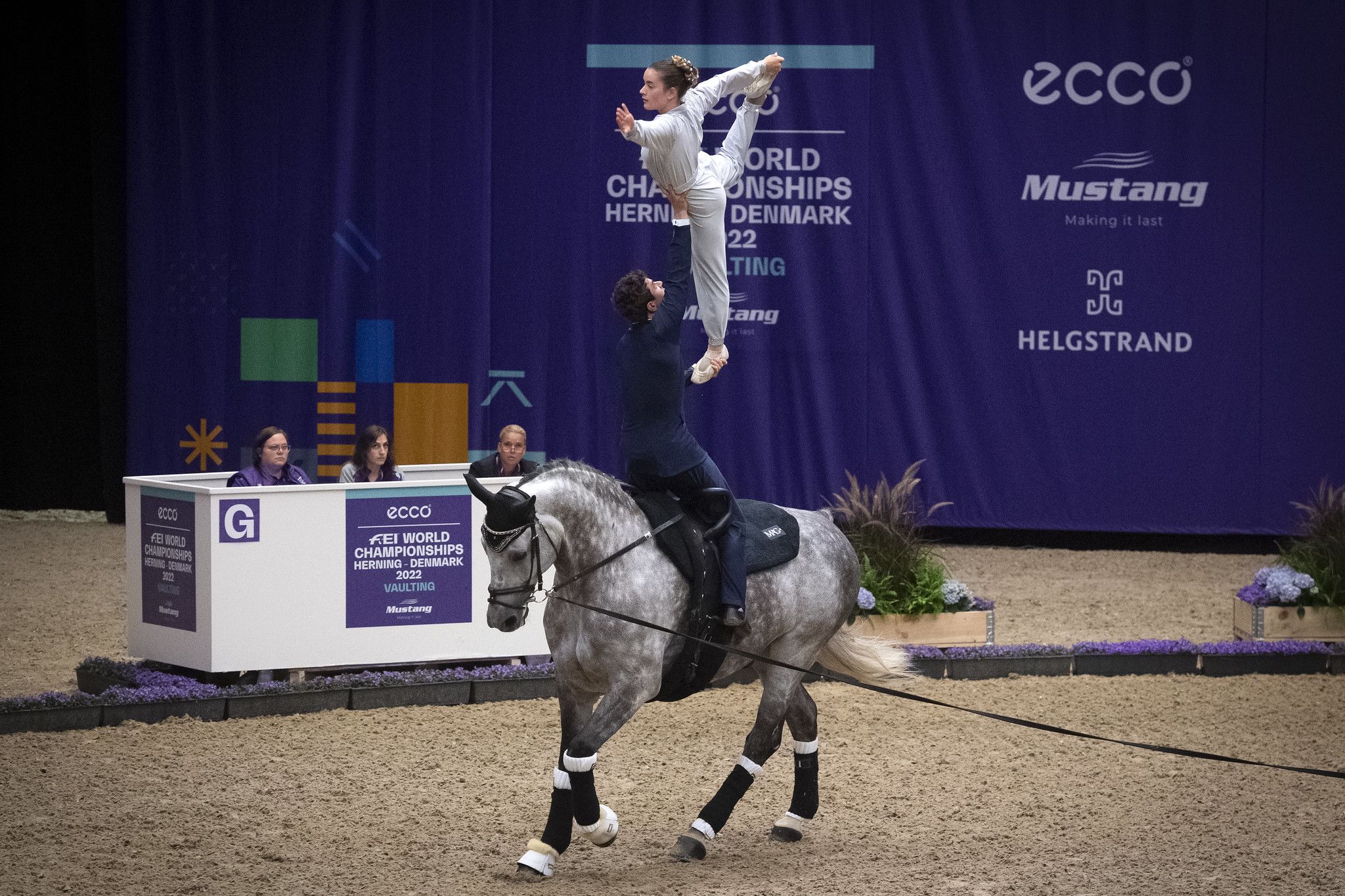 Il Volteggio azzurro festeggia la prima medaglia italiana a Herning (Danimarca), dove sono in corso i Campionati del Mondo 2022 (Volteggio, Dressage, Paradressage e Salto ostacoli).