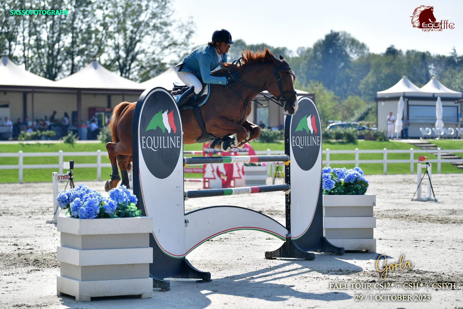 La seconda giornata del CSI2* che si sta tenendo negli impianti dell’Equieffe Equestrian Centre, ha visto la programmazione della categoria 1.45 mt a fasi consecutive. Nella classe dal Montepremi di 26.500,00 €, presentata da Equiline e valevole per la Longines Ranking Jumping, si sono sfidati ben 63 binomi. 12 quelli che hanno concluso con un doppio netto il percorso disegnato da Andrea Colombo e Giovanni Bussu, gli Chef de Piste della seconda settimana del Gorla Fall Tour.