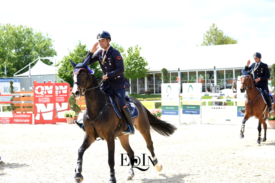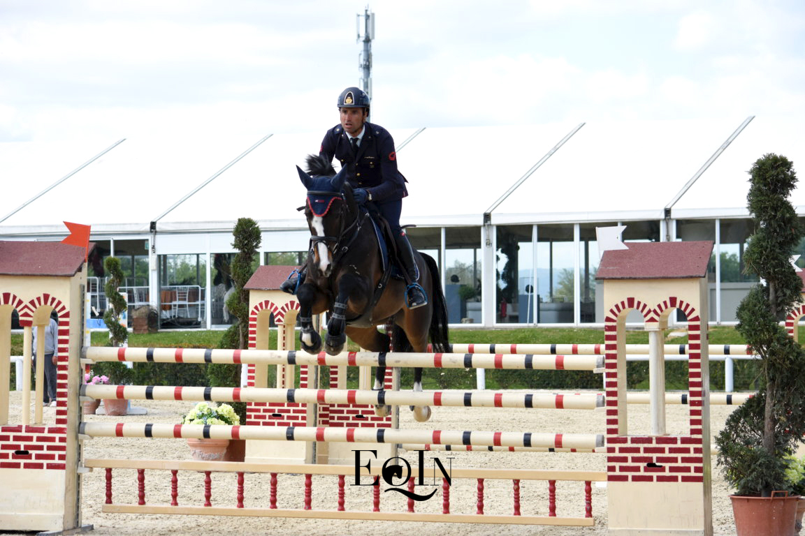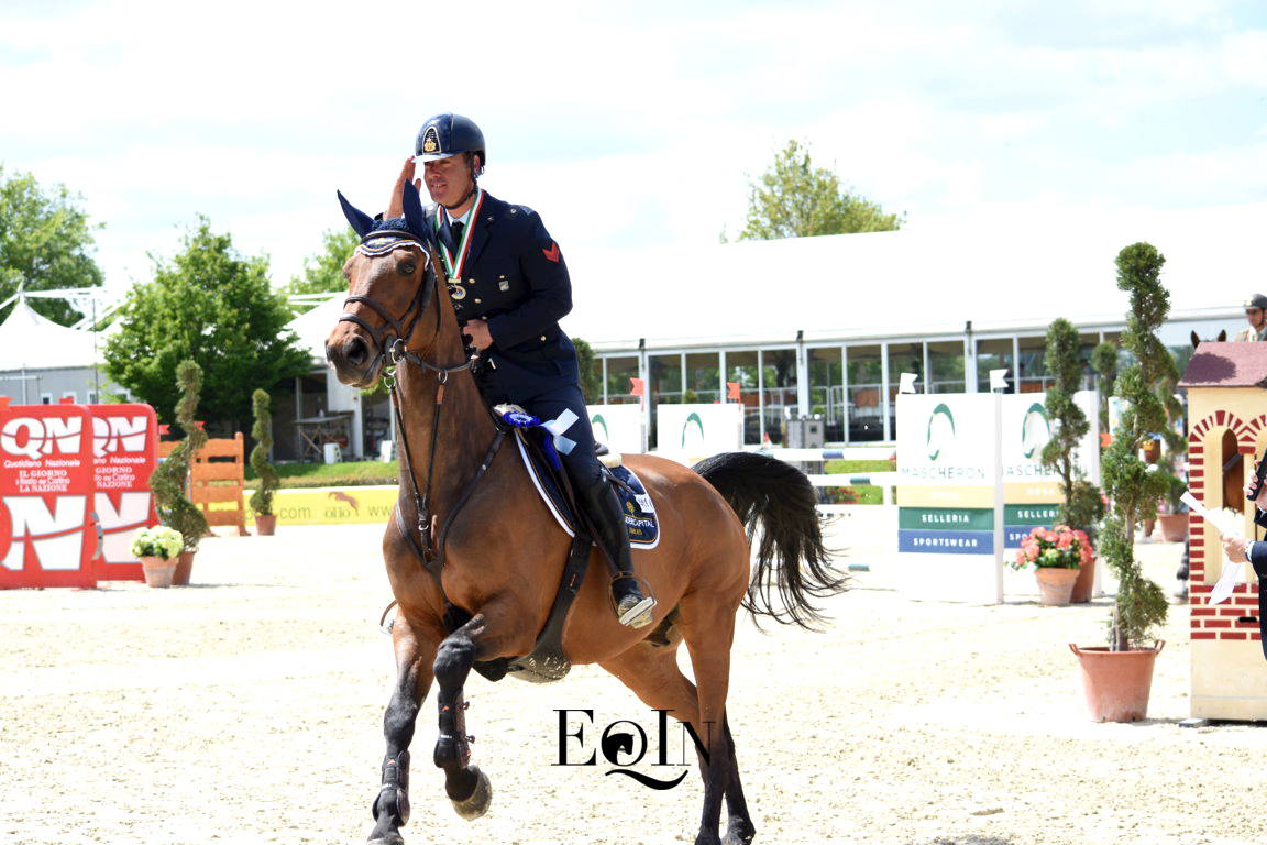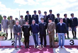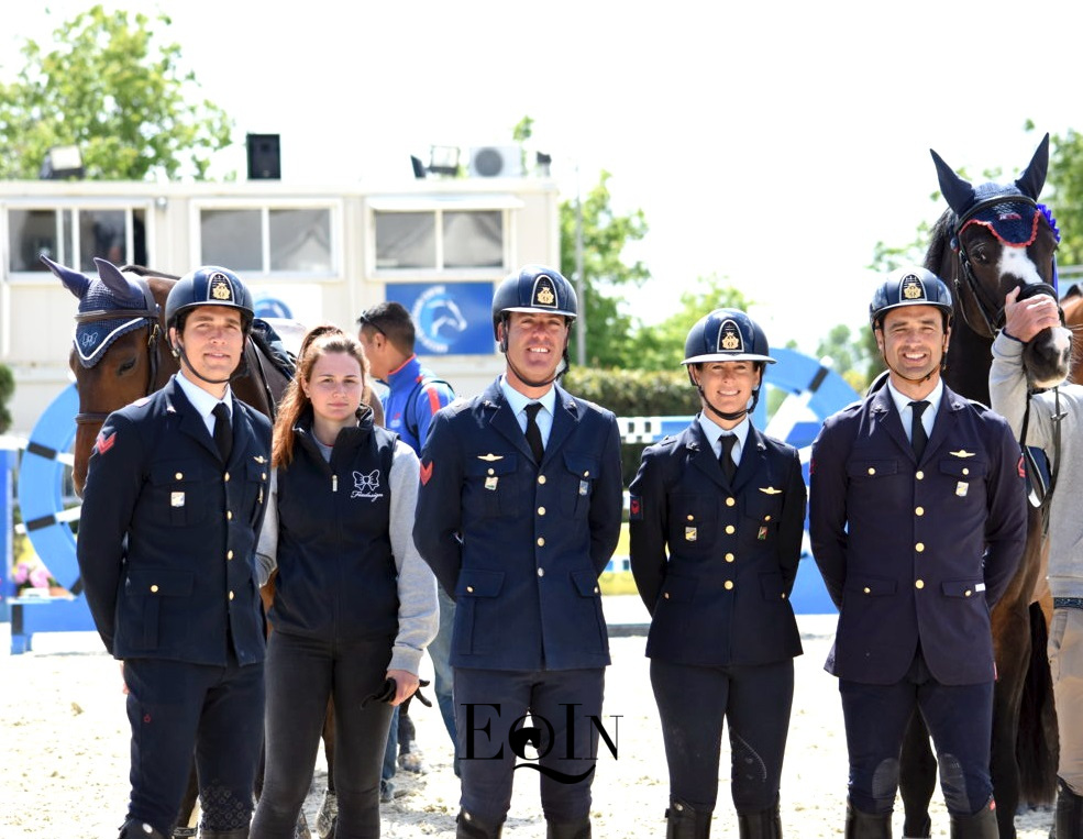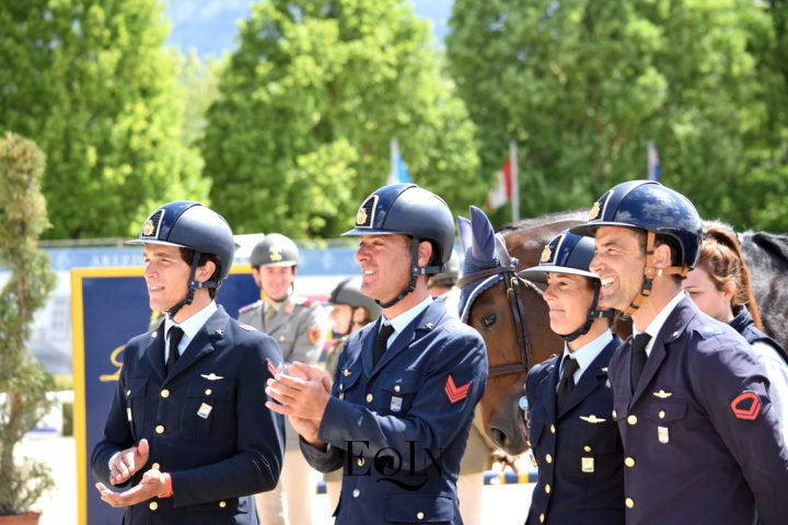 Otto percorsi netti hanno determinato la bella vittoria nella gara Finale del Campionato Interforze a squadre (n. 4) per l’Aeronautica Militare, svoltosi questa mattina nell’Arena Dante degli impianti dell’Arezzo Equestrian Centre. Con capo équipe il Maresciallo Stefano Nogara, ecco i binomi componenti la squadra vincente: il I Aviere scelto Luca Marziani in sella all’olandese – Kwpn – Don’t Worry B (2 percorsi di h. 1,40 mt), il I Aviere scelto Giampiero Garofalo sull’olandese – Kwpn – Epsilon (2 percorsi di 1,35 mt), il I Aviere scelto Giulia Martinengo Marquet con la sette anni italiana Moka delle Schiave (2 percorsi di 1,30 mt), il I aviere scelto Emilio Bicocchi con il giovane italiano – 2011 – Sprint de Marchesana (2 percorsi di 1,25 mt).
