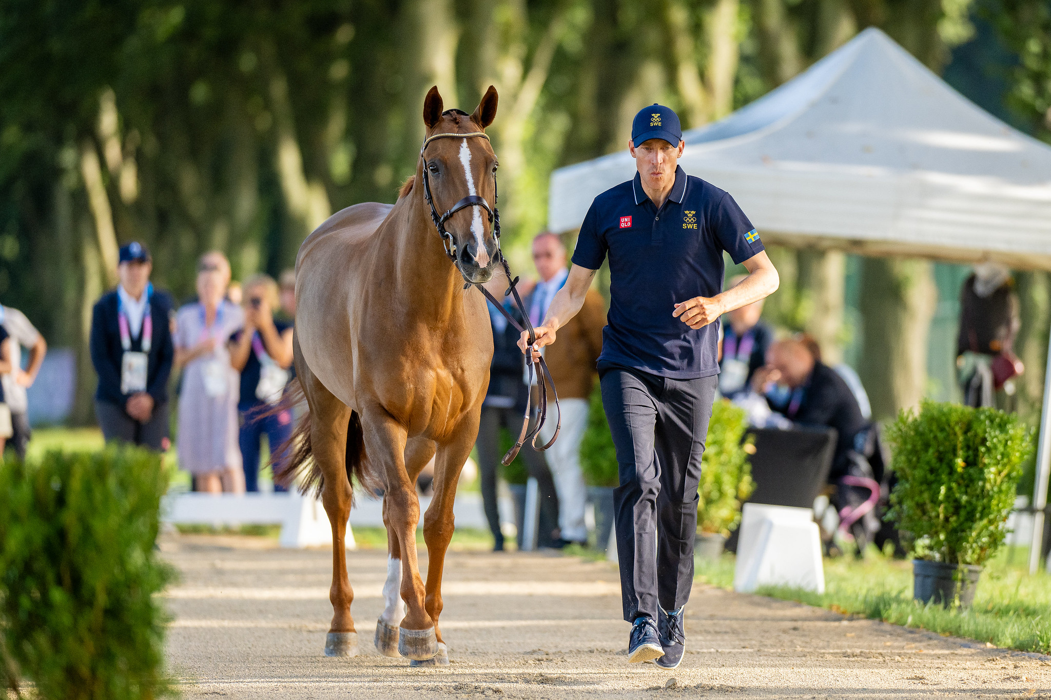 © Comunicato Stampa FEI – trad. ita a cura di L. Ruffino; foto: Henrik von Eckermann (SWE) presenta King Edward alla visita veterinaria al Château de Versailles per i Paris 2024 Olympic Games © FEI/ Benjamin Clark