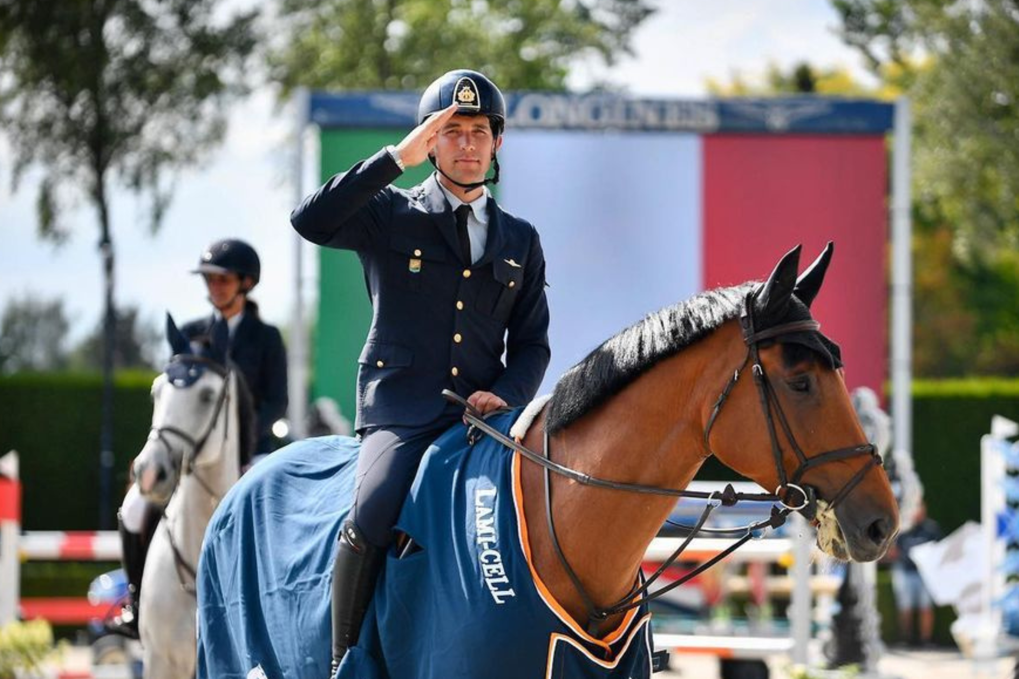 Il Primo Aviere Scelto Giampiero Garofalo con un impeccabile percorso netto in sella all’8 anni francese Fandango de Semilly (2015, Diamant de Semilly x Apache d’Adriers) nel tempo di 59”.30 ha sfiorato la vittoria per soli sei centesimi di secondo. L’atletico baio si trova sotto la sella si Garofalo dal mese di aprile del 2022, per un periodo di tempo è stato montato in gara anche dalla compagna del cavaliere azzurro, Lisa Nooren.