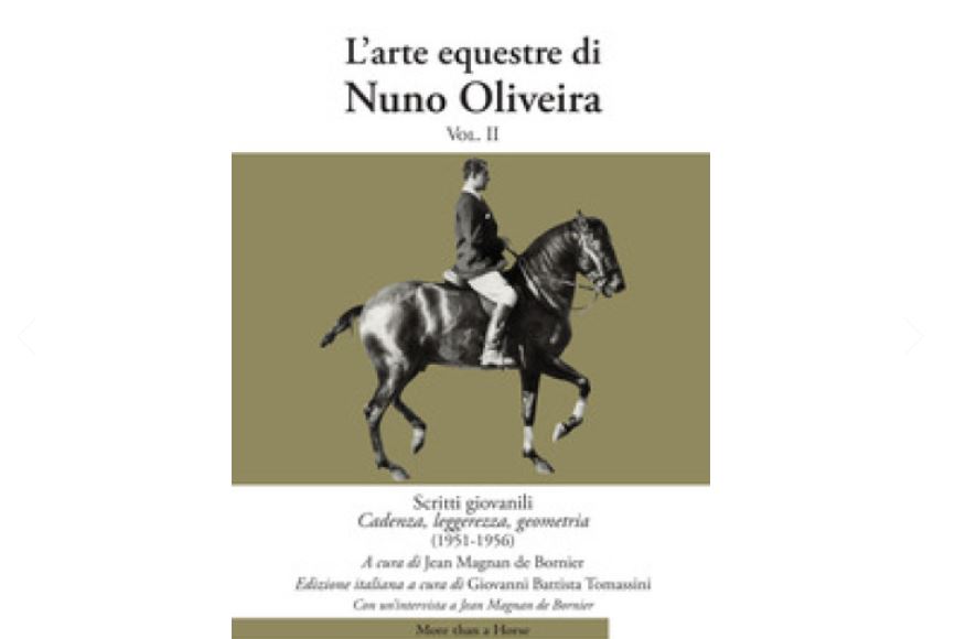 NUNO OLIVEIRA VOL. II – “Scritti giovanili. Cadenza, leggerezza, geometria” (1951-1956), a cura di Jean Magnan de Bornier, ed. it. a cura di G.B. Tomassini, con un’intervista a Jean Magnan de Bornier, ed. More than a Horse, Arezzo 2021: