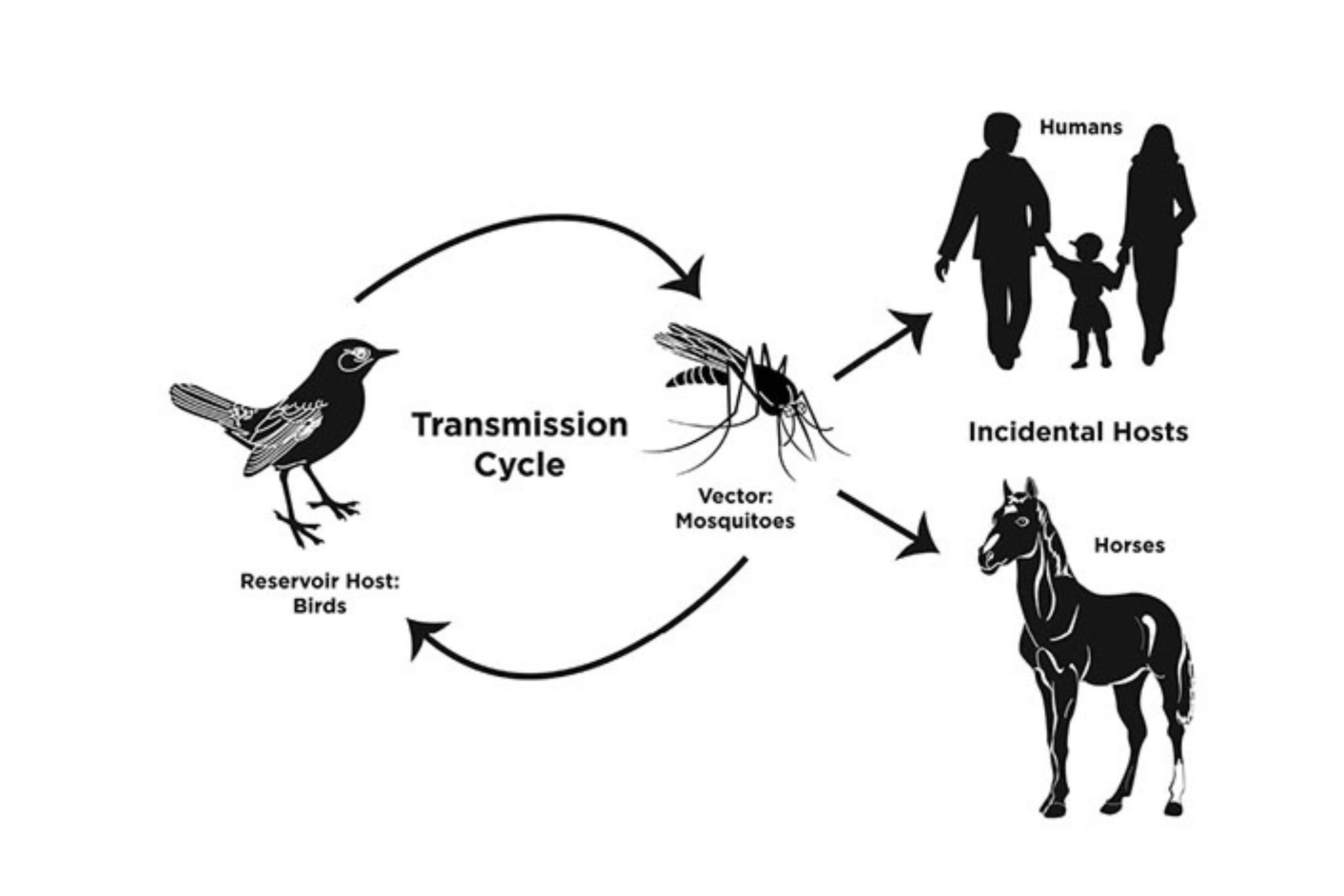 La west nile disease è una patologia infettiva che causa un’encefalomielite (infiammazione dell’encefalo e del midollo spinale). È causata da un Flavivirus, che sfrutta la zanzara come vettore. Il ciclo prevede che la zanzara si infetti dagli uccelli selvatici che fungono da reservoir del virus e ne permettano la diffusione a partire da queste specie. Il cavallo e l’uomo, se infettati dalle zanzare a loro volta infette, sono ospiti accidentali a fondo cieco: ciò significa che non avverrà mai la trasmissione di west nile tra cavallo-cavallo, uomo-cavallo o uomo-uomo. La west nile è ormai ubiquitaria in Italia (soprattutto in Veneto-Lombardia-Emilia Romagna-Friuli V.G. – Piemonte e Sardegna), oltre che largamente diffusa in tutto il mondo.