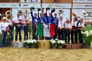 Ma non è finita qui: nel pomeriggio a Givrins l’Italia Junior del Reining diventa Campione del Mondo, mentre gli Young Riders azzurri hanno meritato la medaglia d’argento.