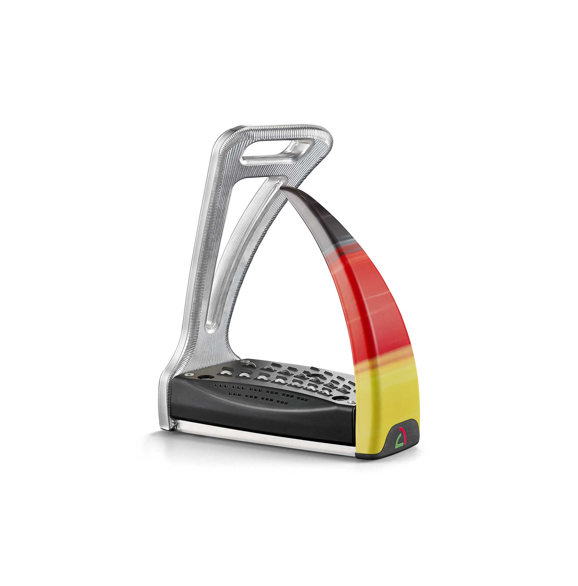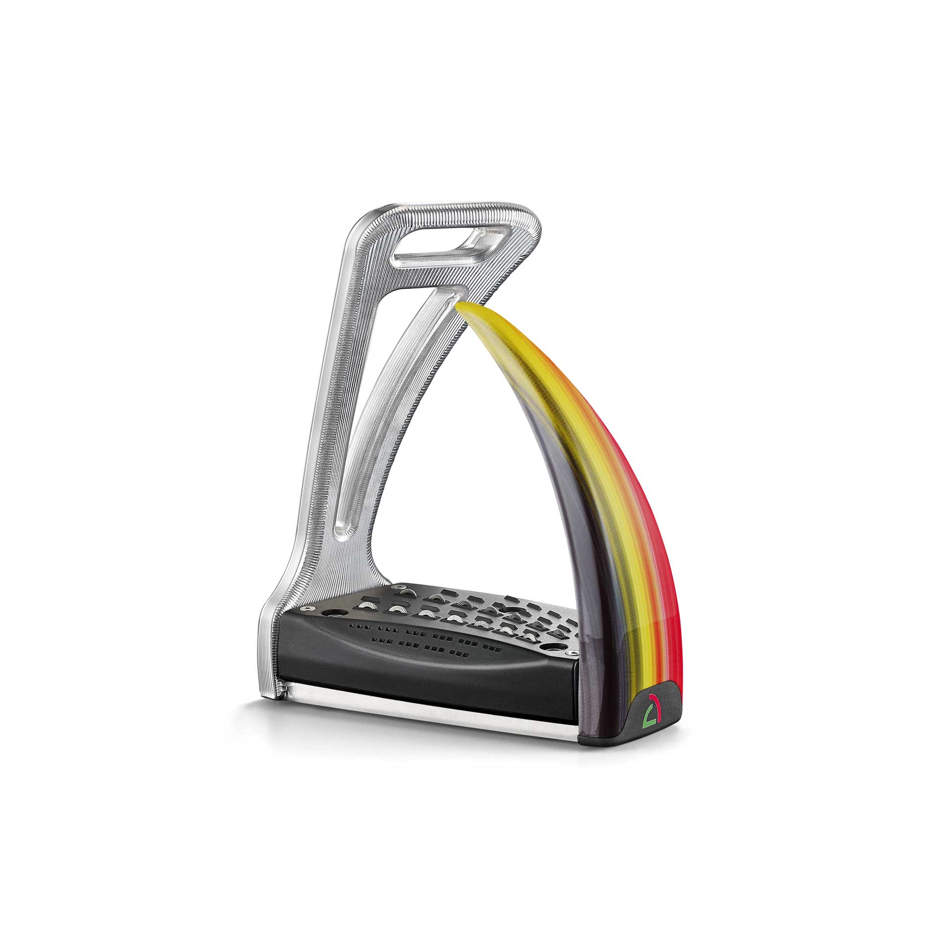 La sicurezza di tutte le staffe Safe Riding è totale, certificata e coperta da brevetti depositati a livello internazionale. L’arco si apre in ogni direzione a 90° e, in caso di caduta, permette al cavaliere di liberare completamente il piede evitando di rimanere “instaffato”. Il comfort è garantito dalla pedana ammortizzata che è dotata di un sistema di gripping innovativo, in grado di adattarsi a qualsiasi sollecitazione, offrendo una sensazione di massima sicurezza in ogni condizione di monta o durante una performance atletica.