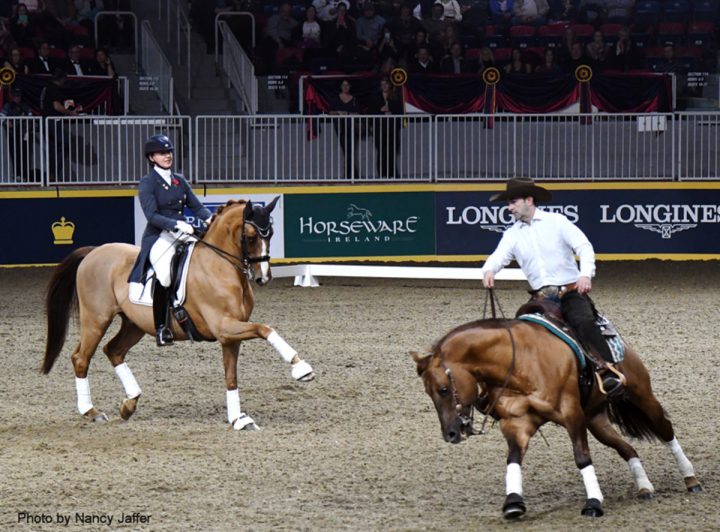 È il caso ad esempio del numero andato in scena al Toronto’s Royal Winter Fair dove la dressagista Esther Mortimer e il reiner Loris Epis si sono sfidati bonariamente nella prova-spettacolo “Anything you can do, I can do better”, un modo per sottolineare con ilarità la contesa perpetua tra monta western e monta inglese. Numero comico ma al contempo anche altamente tecnico, perché è ormai risaputo che non si può far commedia senza saper recitare bene: chi è del settore, ad una rapida occhiata al video, non mancherà certo di rilevare l’altissimo livello tecnico necessario per la performance. Il risultato? Uno spettacolo che ha scatenato il pubblico, letteralmente in visibilio, che si è lasciato andare a urla, risate e tifo sfegatato.