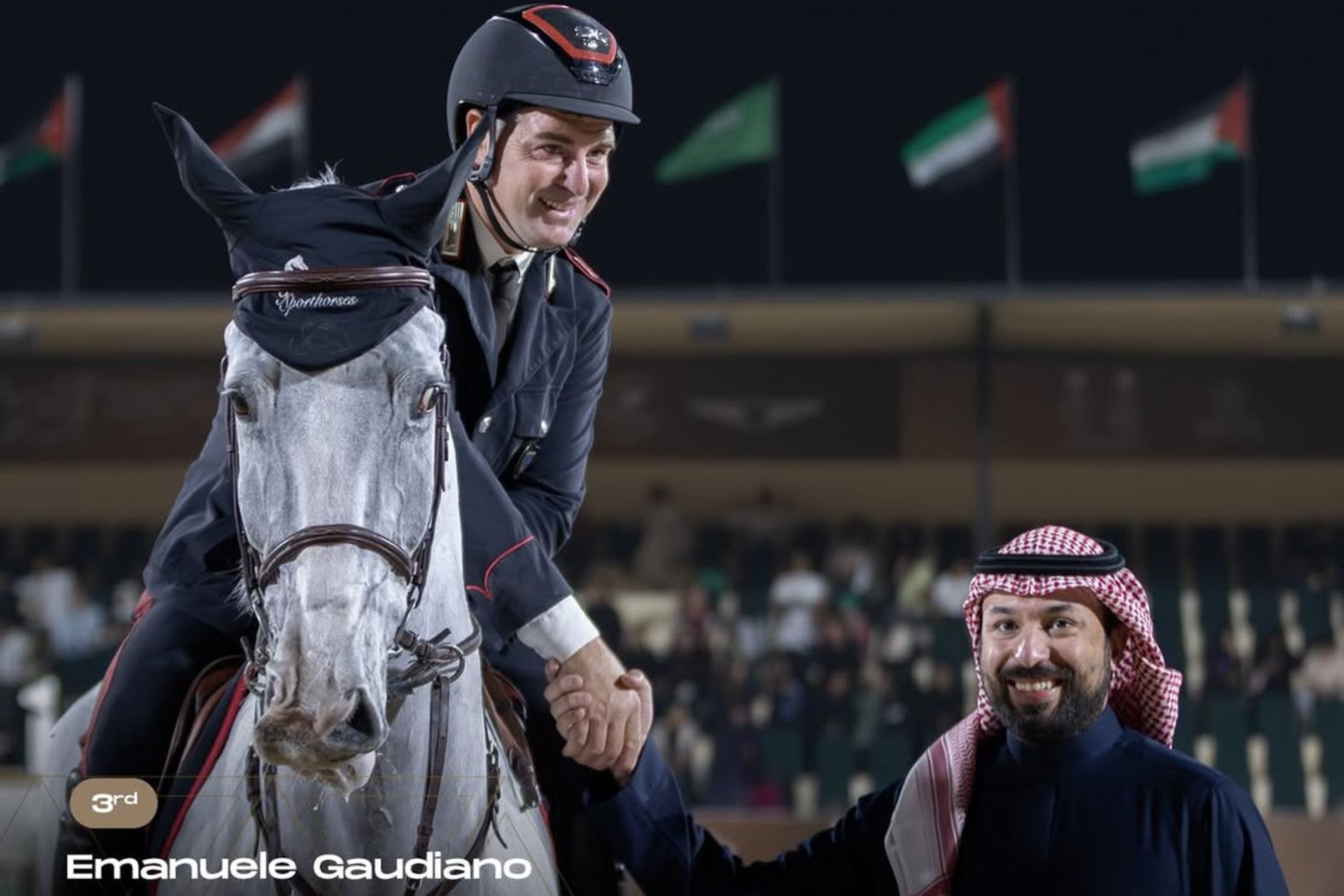 © F.Poggi – Riproduzione Riservata; foto: Emanuele Gaudiano e Chalou’s Love PS in premiazione © via IG_Jump Saudi