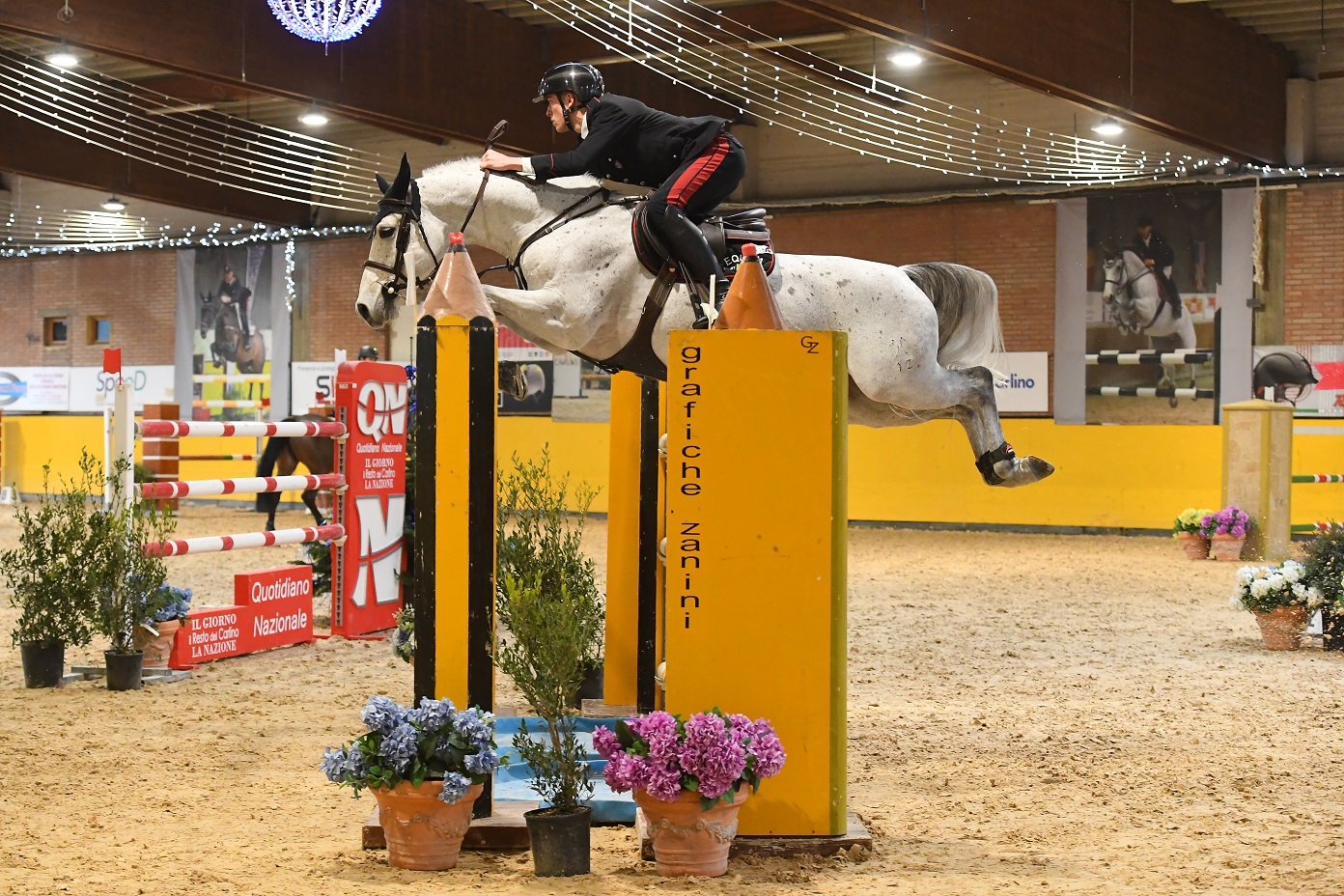 Per la seconda prova del Campionato Interforze, la C135 a squadre ha visto accedere al barrage finale, combattutissimo e sempre molto divertente, un rappresentante ciascuno per Esercito, Arma dei Carabinieri ed Aeronautica. É stato il Caporal Maggiore Guido Franchi con Italie a partire all’attacco per l’Esercito Italiano. Percorso netto e 30’’21 il tempo per il cavaliere senese, ma un superlativo Giacomo Casadei assecondato dal suo Lintous ha disegnato delle girate da pirata, più che da Carabiniere e preso il comando della partita. Terza a partire il 1°Aviere Capo scelto  Giulia Martinengo Marquet, impeccabile come sempre ma che con il tempo di 29’’14 rimane dietro Casadei junior: e il 2° Campionato a squadre Interforze Indooor di salto ostacoli è così ufficialmente dell’Arma dei Carabinieri.