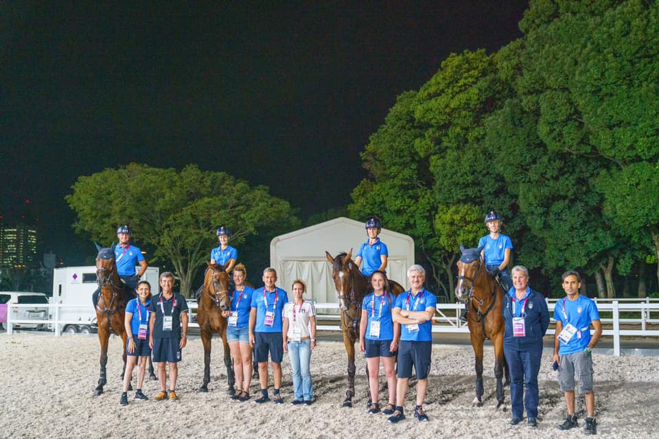© Redaz,; riproduzione riservata; foto la squadra italiana di Completo a Tokyo 2020 (Brecciaroli, Schivo, Panizzon, Bordone) © fb Susanna Bordone