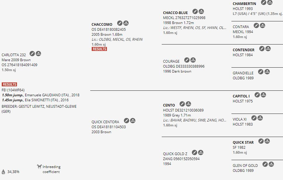Da Chaccomo x Cento, Carlotta ha dimostrato da subito una grande potenza, competitività, coraggio e tenacia. Un binomio, quello di Gaudiano e Carlotta, che è cresciuto progressivamente, partendo dalle 115 riservate ai giovani cavalli di 5 anni per arrivare, gradualmente, alle categorie più alte dei più importanti concorsi internazionali di Salto Ostacoli.