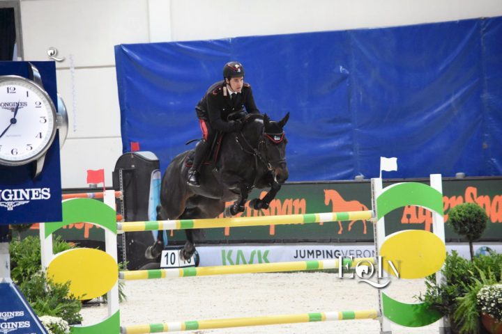 Femmina, baio oscuro, anno 2009, OS Studbook – The Springpferdezuchtverband Oldenburg-International) e due grandi occhi scuri. È lei, Carlotta 232 la 9 anni che sta ottenendo risultati meravigliosi sotto la sella del nostro carabiniere scelto Emanuele Gaudiano.