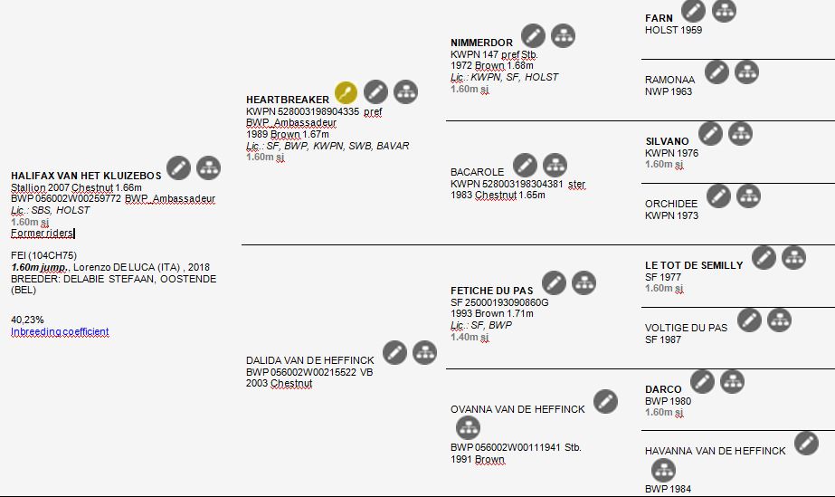 Montato nel 2013 da Frederic Vernaet e nel 2014 da Daniel Deusser, è sotto la sella del Primo aviere scelto Lorenzo De Luca che questo meraviglioso figlio di Heartbreaker e Dalida Vd Heffinck ha stazionato per diversi mesi nel primo posto della classifica dei migliori cavalli al mondo per quanto riguarda il Salto Ostacoli del 2017.