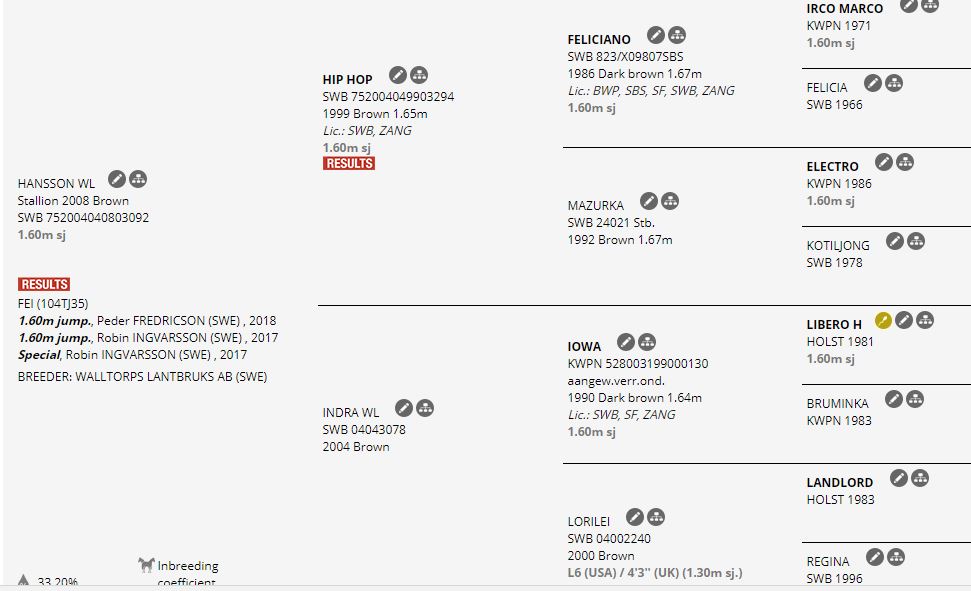 Questo cavallo (da Hip Hop x Iowa, vedi schema genealogia completa cliccando la foto qui sopra) sta affrontando una stagione favolosa. Nella sua carriera conta un totale di 91 partecipazioni a concorsi internazionali, di cui dieci in World Cup, dieci in gare a squadre, e dodici in concorsi internazionali a 5*.