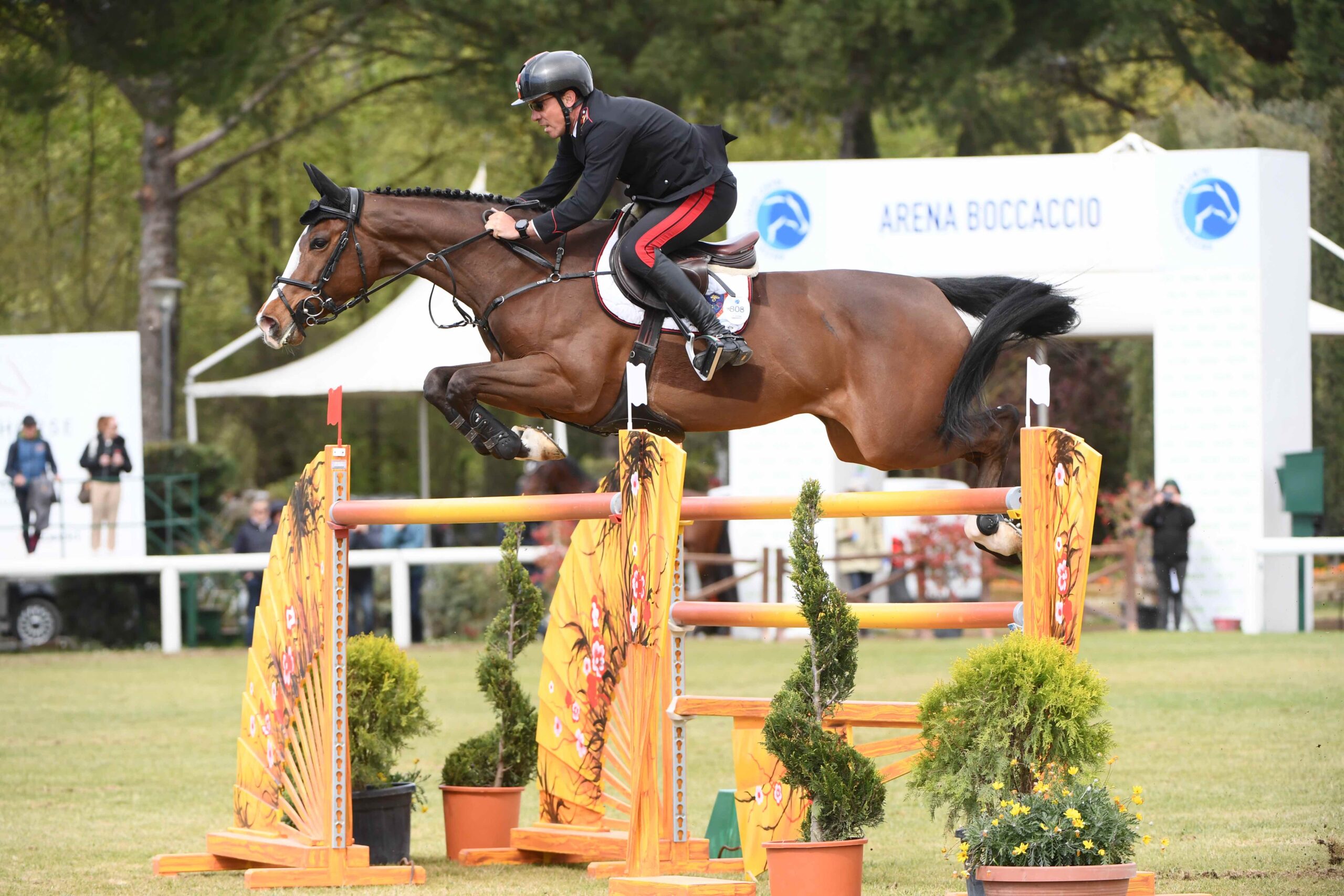 Un’ottima performance è stata quella dell’Appuntato Scelto Massimo Grossato che, accompagnato dalla femmina italiana di dieci anni Tinkabelle RS (Tinka’s Boy x Contender) ha conquistato la Piazza d’Onore grazie a 0/4 in 39”.51: vi è stato infatti un unico doppio zero in tutta la gara, quello realizzato dal binomio vincitore, del quale parleremo a breve. Torniamo a Grossato: il quarantottenne torinese (C.I. La Barletta – Asti) si era già messo in evidenza la scorsa settimana nel CSI4* aretino meritando il terzo gradino del podio della 145 di apertura (+ informazioni: clicca qui) e, più recentemente, ieri, guadagnando il secondo gradino del podio nella prima tappa dell’Italian Champions Tour, a titolo individuale. Insomma, la soddisfazione per Massimo al Toscana Tour 2023 è oggi arrivata: tra i cavalieri azzurri più solidi (ha all’attivo circa 50 coppe delle nazioni Senior – attendiamo di vederlo in azione a Gorla Minore, la prossima settimana, per lo CSIO3* EEF -, ed è sempre stato uno dei punti di forza della squadra Italiana. Ha partecipato due volte ai Campionati d’Europa senior e ad un Campionato del Mondo, riuscendo sempre ad arrivare in finale individuale nelle molteplici manifestazioni internazionali); da anni, ottimo trainer di giovani soggetti, tutti lo ricordiamo per i successi con il performer italiano Lazzaro delle Schiave (Acodetto I x Gluecksgriff), da lui cresciuto, che tuttavia perse smalto proprio dopo la vendita e l’allontanamento da Grossato, nell’autunno 2019 (+ info: clicca qui). In sella a Lazzaro delle Schiave nel 2019 si era qualificato decimo assoluto al Gran Premio di Calgary ed aveva chiuso con 0 penalità la finale di Coppa delle Nazioni di Barcellona, qualificante per le Olimpiadi di Tokyo 2020. Insomma, ottimo Massimo! La stagione 2023 potrebbe riservare molte sorprese.