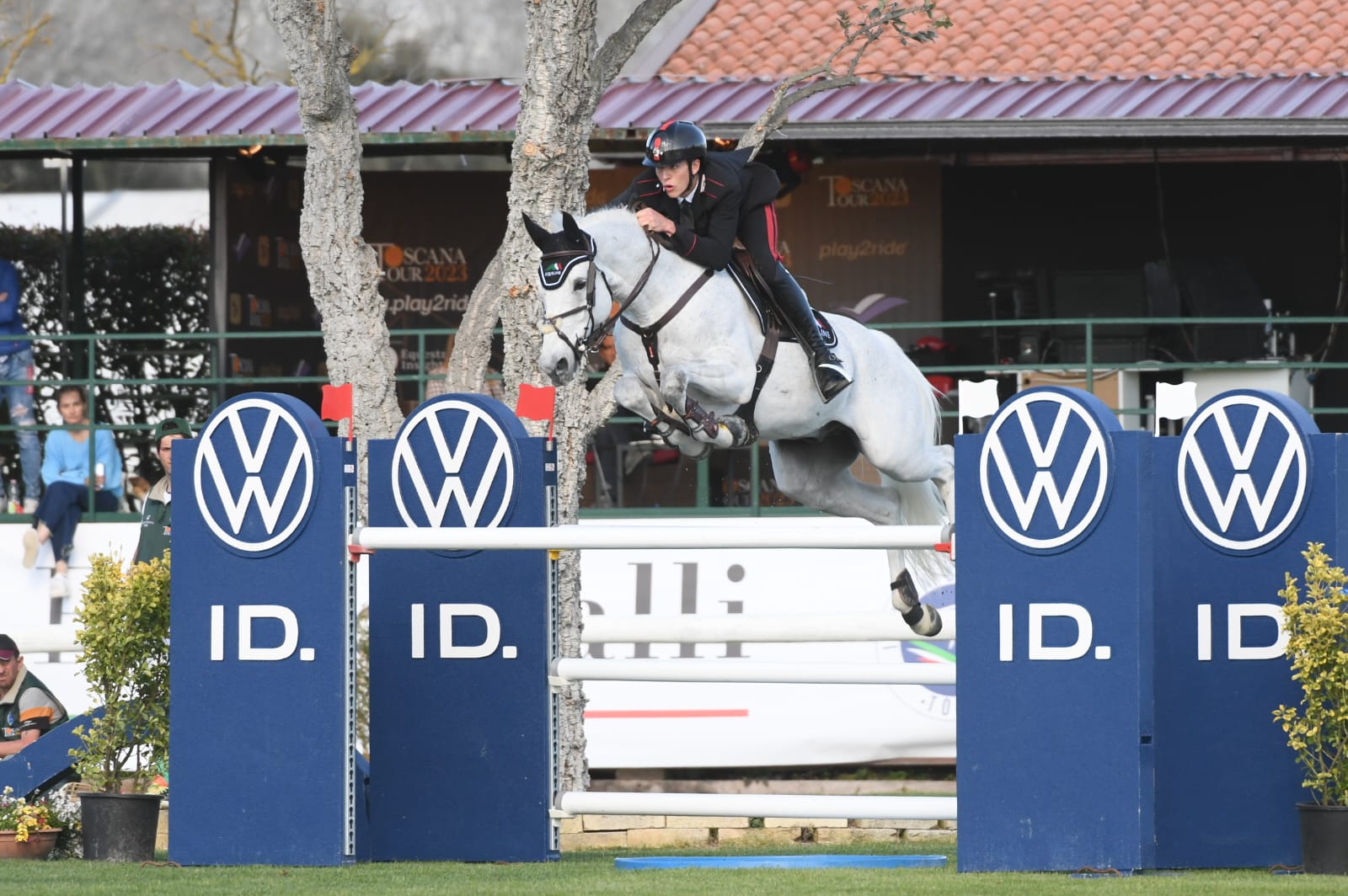 L’arena in erba Boccaccio è stata la cornice di una sfida agguerrita tra i tredici ostacoli per sedici sforzi disposti in campo. Migliore tra gli azzurri, in questa prova qualificante per il Gran Premio, è stato Giacomo Casadei, il giovane Carabiniere in sella allo stallone italiano del 2009 Ballantine Di Villagana (Quidam de Revel x Athlet Z) è stato autore di una performance senza errori chiusa in 74”.39, risultato che gli è valso i piedi del podio.