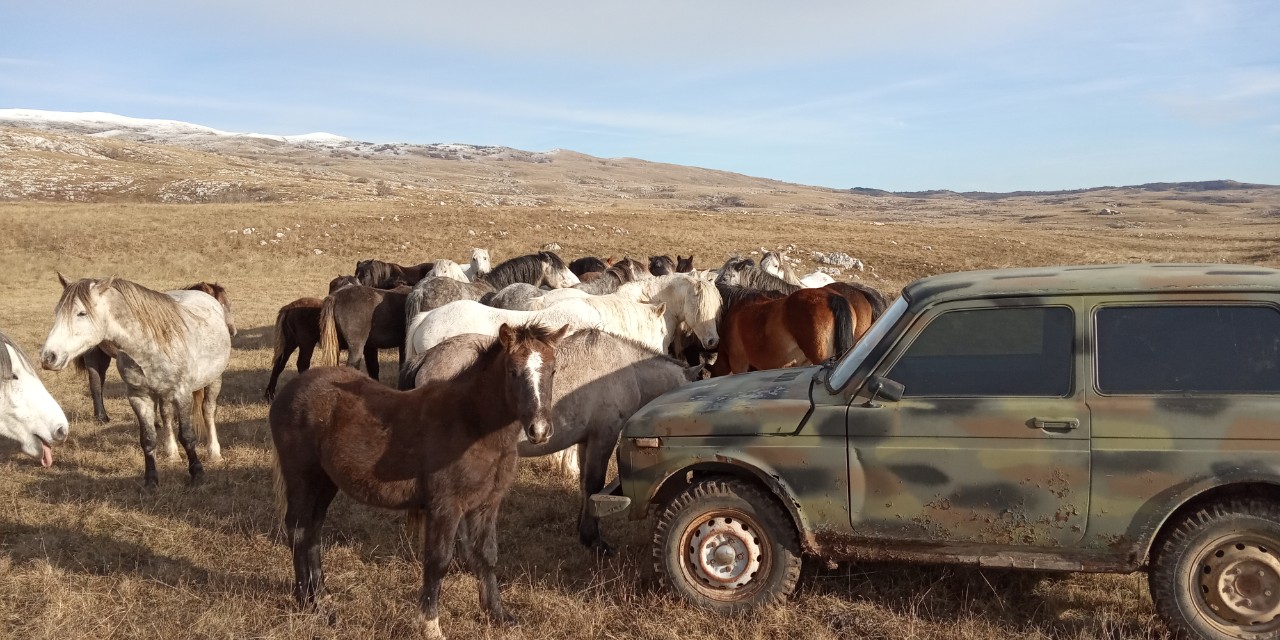 “I primi cavalli divenuti selvaggi furono quelli che non avevano più un posto dove tornare. Figli orfani delle loro famiglie umane. Nella seconda metà degli anni Sessanta intere famiglie in cerca di un futuro migliore lasciarono la loro terra natia. Spesso si trasferivano sulla costa dalmata oppure in Germania, Nuova Zelanda, Australia e America del Nord. “I loro cavalli furono i primi a dover cercare una vita altrove. La trovarono proprio tra la montagna Cincar e gli altopiani di Krug. E sono di tutti e di nessuno. Peggio di così non poteva essere”, conclude il suo racconto Mario che ha con questi animali un rapporto molto intenso. Infatti, di questo sensazionale fenomeno – unico da queste parti del vecchio continente ma raro anche nel resto dell’Europa – di loro non si occupa formalmente nessuno, ad eccezione di Mario e i suoi “rider”: da molti anni infatti assieme al gruppo di motociclisti “I lupi di Livno”, di cui fa parte, si occupa della loro gestione. “Soprattutto in inverno e nei giorni di caldo torrido e della ‘siccità alla bosniaca’”, sottolinea lui.