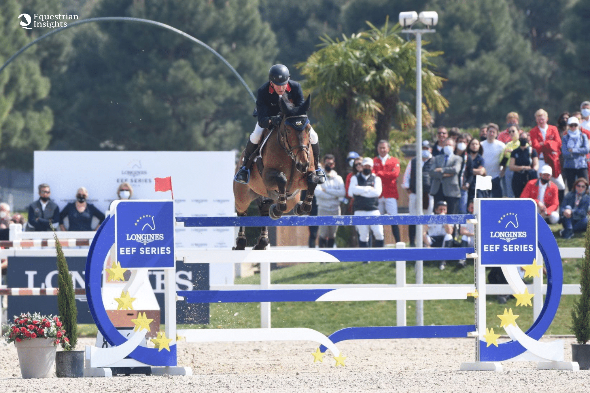 © Redaz.; riproduzione riservata; foto: il fuoriclasse britannico John Whitaker con Unick du Francport in azione durante la tappa di Coppa delle Nazioni CSIO3* Longines EEF del 2021 archivio © A.Benna / EqIn