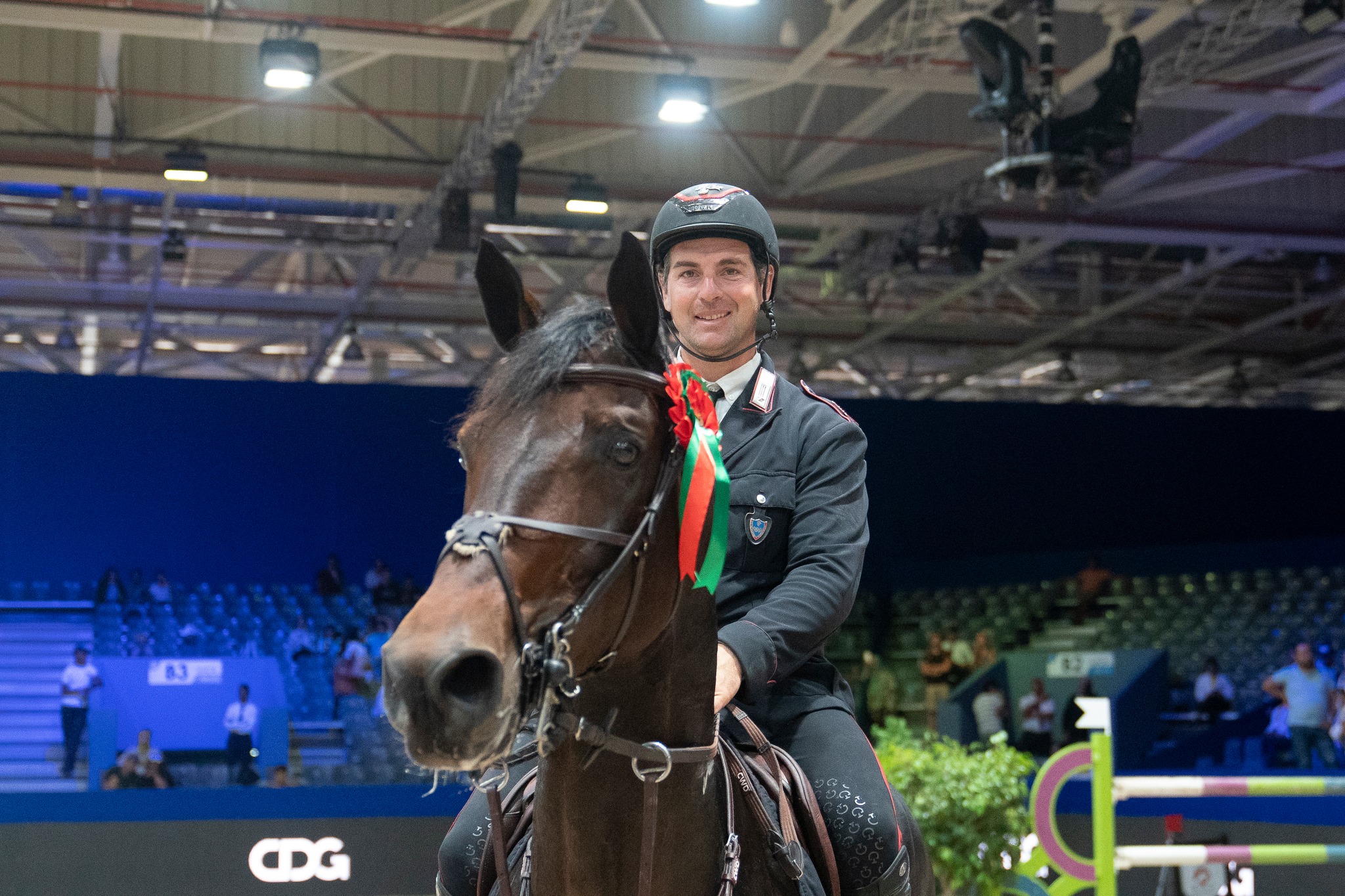 L’Appuntato dell’Arma dei Carabinieri ha solcato l’arena sfidandosi con gli altri trentuno binomi nel percorso winning round misurato su altezze di 1.50mt. L’unica Ranking Class odierna si è districata su tredici salti per sedici sforzi, a cui è seguito il winning round di sei salti più una combinazione sapientemente disposti in campo dal team di course designer Peter Schumacher (GER), Ahmed Marzouki (MAR), Chafik Benkhraba (MAR), Said Elkadiri (MAR).