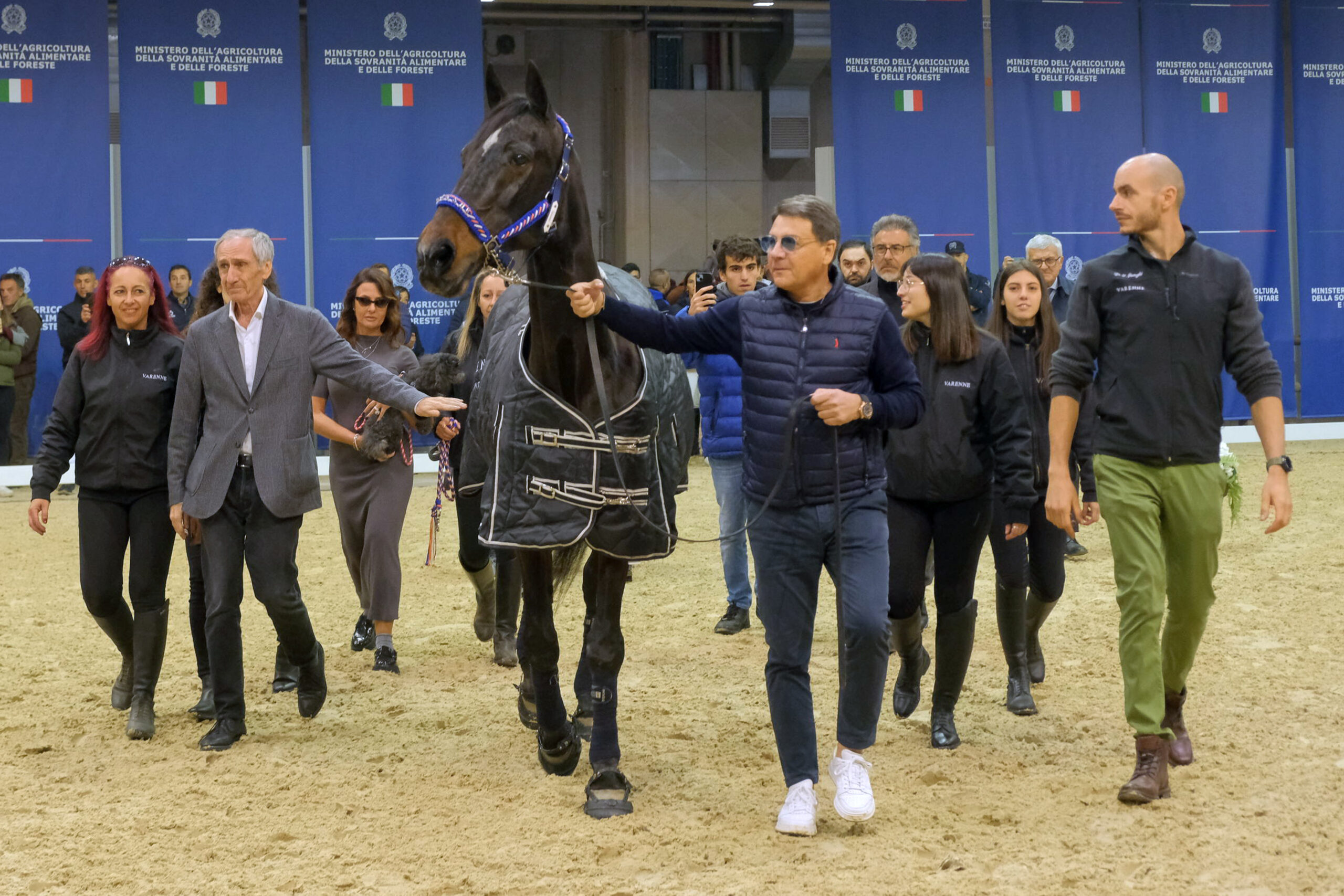 Varenne, il cavallo campione del trotto italiano e internazionale, è stato premiato oggi a Verona nella giornata inaugurale della 125ª Fieracavalli. A consegnare il premio alla carriera, nel padiglione del Masaf, il ministro dell’Agricoltura, della Sovranità alimentare e delle Foreste, Francesco Lollobrigida.