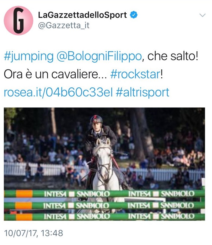 Come Filippo ha ribadito in più occasioni nei suoi social network dal caricamento di “Spettacolare” in ITunes, il progetto Filippo Bologni Music ha come obiettivo principale quello di portare l’universo dei cavalli anche là dove non esiste affatto, o riveste un ruolo solo marginale: e intanto questa impresa musicale per il mondo equestre ha ottenuto pure l’attenzione de La Gazzetta dello Sport, che vi ha dedicato un articolo: