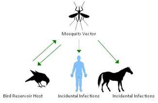 Il virus West Nile viaggia attraverso la circolazione sanguigna fino a raggiungere il cervello e il midollo spinale, provocando un’infiammazione con sintomi neurologici gravi e potenzialmente fatali. Il virus si trasmette direttamente mediante le zanzare e non da cavallo a cavallo o da cavallo a uomo: il passaggio del virus dalle zanzare ai cavalli è la tappa che solitamente precede il contagio dell’uomo. Nell’uomo la malattia può anche evolvere in forma “simil-influenzale”.